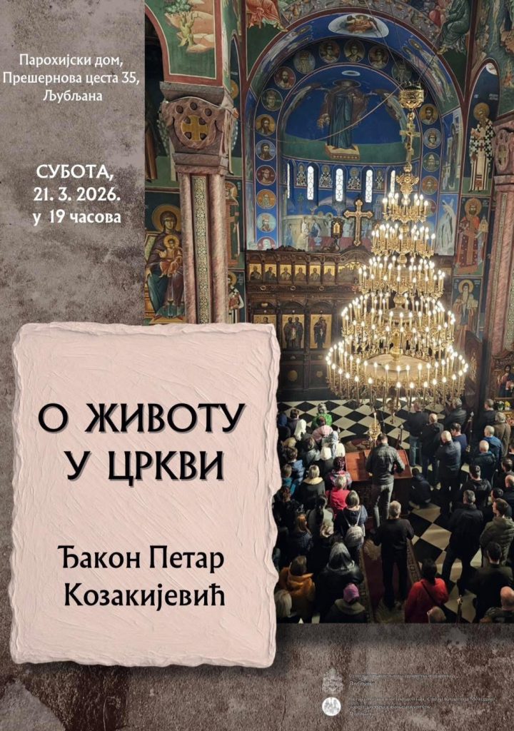 У суботу, 21. марта 2026. године, предавање ће одржати ђакон Петар Козакијевић на тему: „О животу у Цркви“. Предавање ће бити одржано у Парохијском дому, у Прешерновој цести 35 у, са почетком у 19 часова.