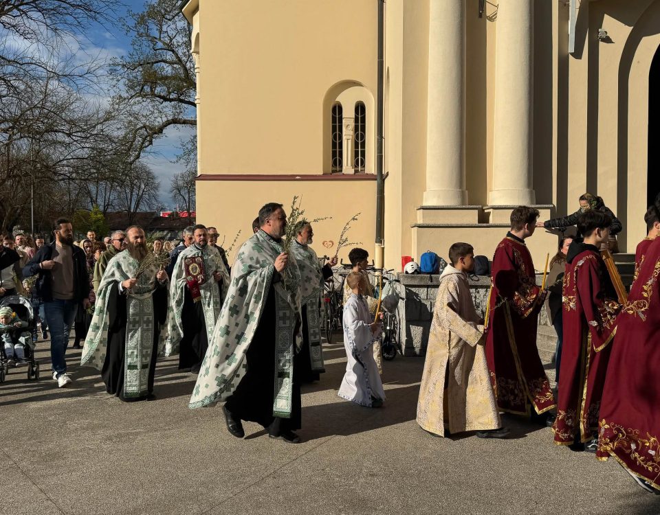 Лазарева субота у храму Светих Кирила и Методија у Љубљани прослављена је служењем Свете литургије у јутарњим часовима и традиционалном поподневном литијом и вечерњим богослужењем.