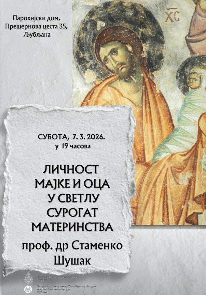 Прво предавање ће, у суботу, 7. марта, са почетком у 19 часова, у Парохијском дому, одржати проф. др Стаменко Шушак, на тему “Личност мајке и оца у светлу сурогат материнства”.