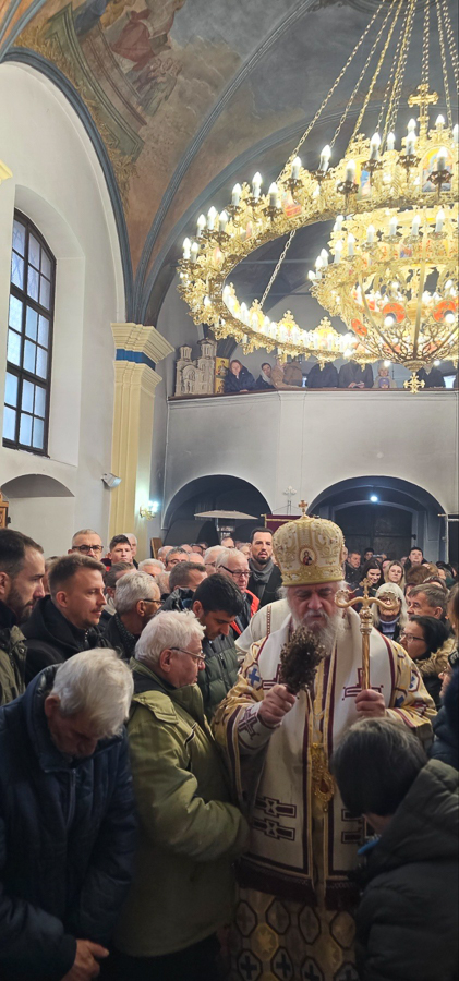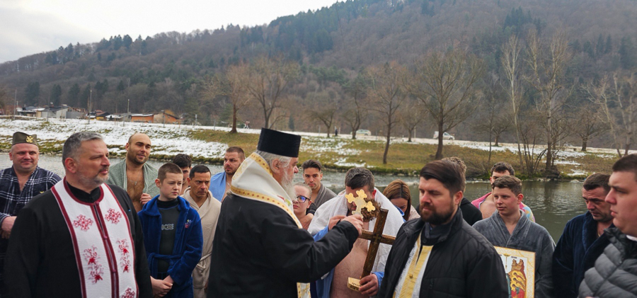 У литургијској бесједи епископ Кирило говорио је о догађају Крштења Господњег на ријеци Јордан, истакавши да се у овом догађају открио домострој спасења и да се свијету објавила тајна Пресвете Тројице. Нагласио је да Христос своје дјело освећења све твари започиње освећењем воде, јер вода је симбол, али и основна материја која омогућава живот. Кроз воду се и пројављује благодат Духа Светога. Епископ Кирило је говорио о тајни крштења, јер како Јованово погружавање у ријеку Јордан, тако касније и хришћанско крштење, подразумијевају слободан и лични одговор човјека на Божји позив.