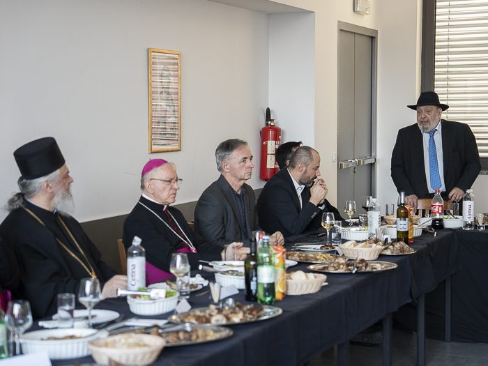 Присутнима се потом обратио Луциано Моше Прелевић, главни рабин Јеврејске општине Загреб, који је окупљене поздравио традиционалним јеврејским поздравом мира. Нагласио је да се на оваквим сусретима титуле повлаче пред оним што је суштинско, јер „пред Богом нема титула“, док функције и положаји пролазе. Посебно је истакао заповијест љубави према ближњему, тумачећи је не као осјећај, него као конкретно дјеловање и одговорност према другоме, подсјетивши да су сви људи, као потомци Адама, позвани на међусобно уважавање и заједништво. На крају се захвалио домаћину и присутнима, истакавши да је заједничко благовање и разговор знак дјела које је „Богу угодно“, те упутио празничне честитке у духу мира и заједништва.