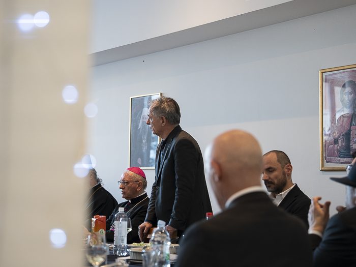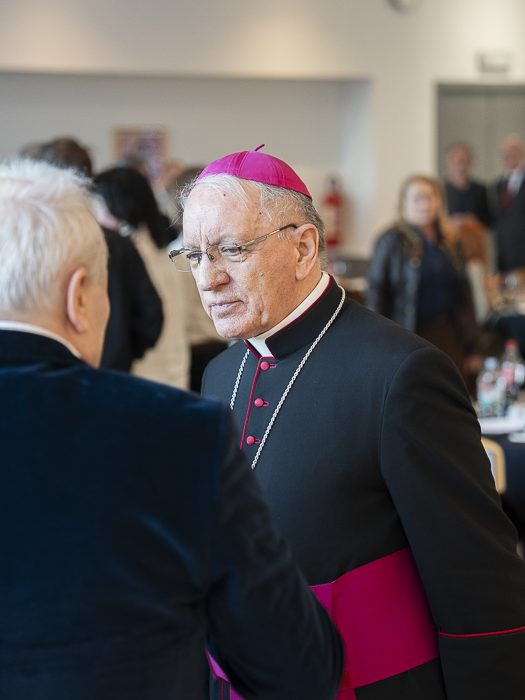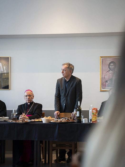У име Свете Столице присутнима се обратио апостолски нунциј у Републици Хрватској, монс. Гиоргио Лингуа, који се захвалио епископу Кирилу на позиву и прилици да се Божић прослави у заједништву. У свом обраћању, монс. Гиоргио Лингуа је нагласио потребу за свједочењем јединства и сарадње у савременом свијету обиљеженом подјелама и поларизацијом, истакавши да је одговорност сваког појединца да учини „барем мали корак“ ка миру. Изразио је наду да ће предстојећа година донијети више мира и сусрета, те поручио да су управо оваква окупљања знак воље да се иде „против струје“ подјела и у правцу дијалога и међусобног разумијевања.