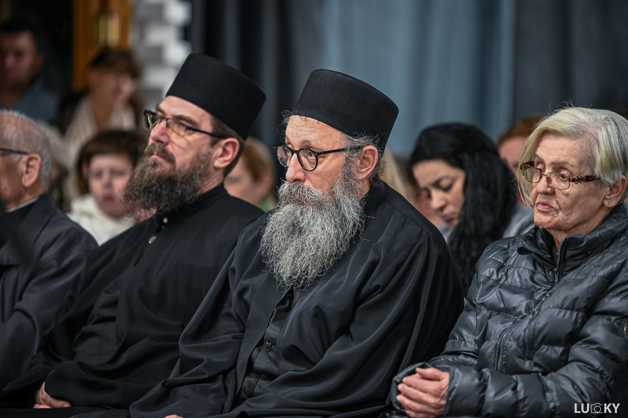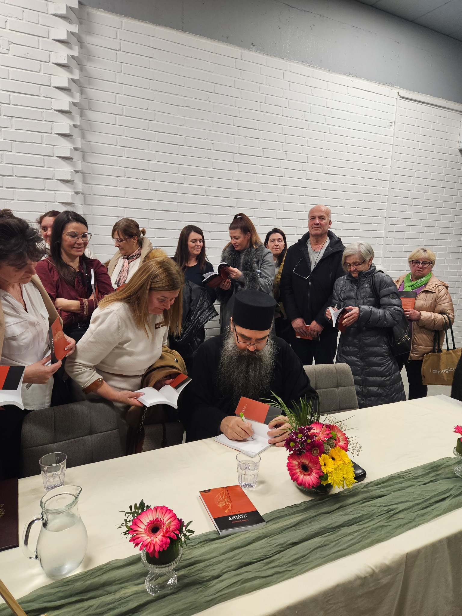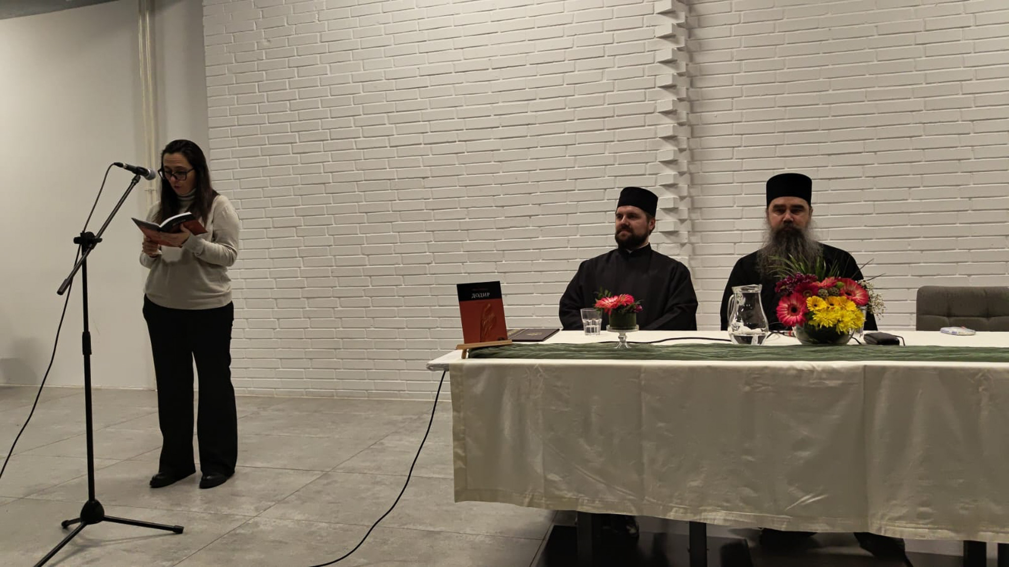 Духовно вече започело је Вечерњим богослужењем у Храму Спаљивање моштију Светог Саве, а затим у препуној дворани, отац Теодосије је говорио о животу на Светој Гори и о својој ауторској књизи „Додир“.