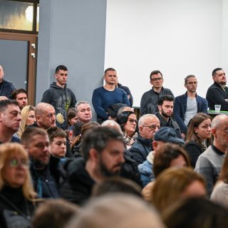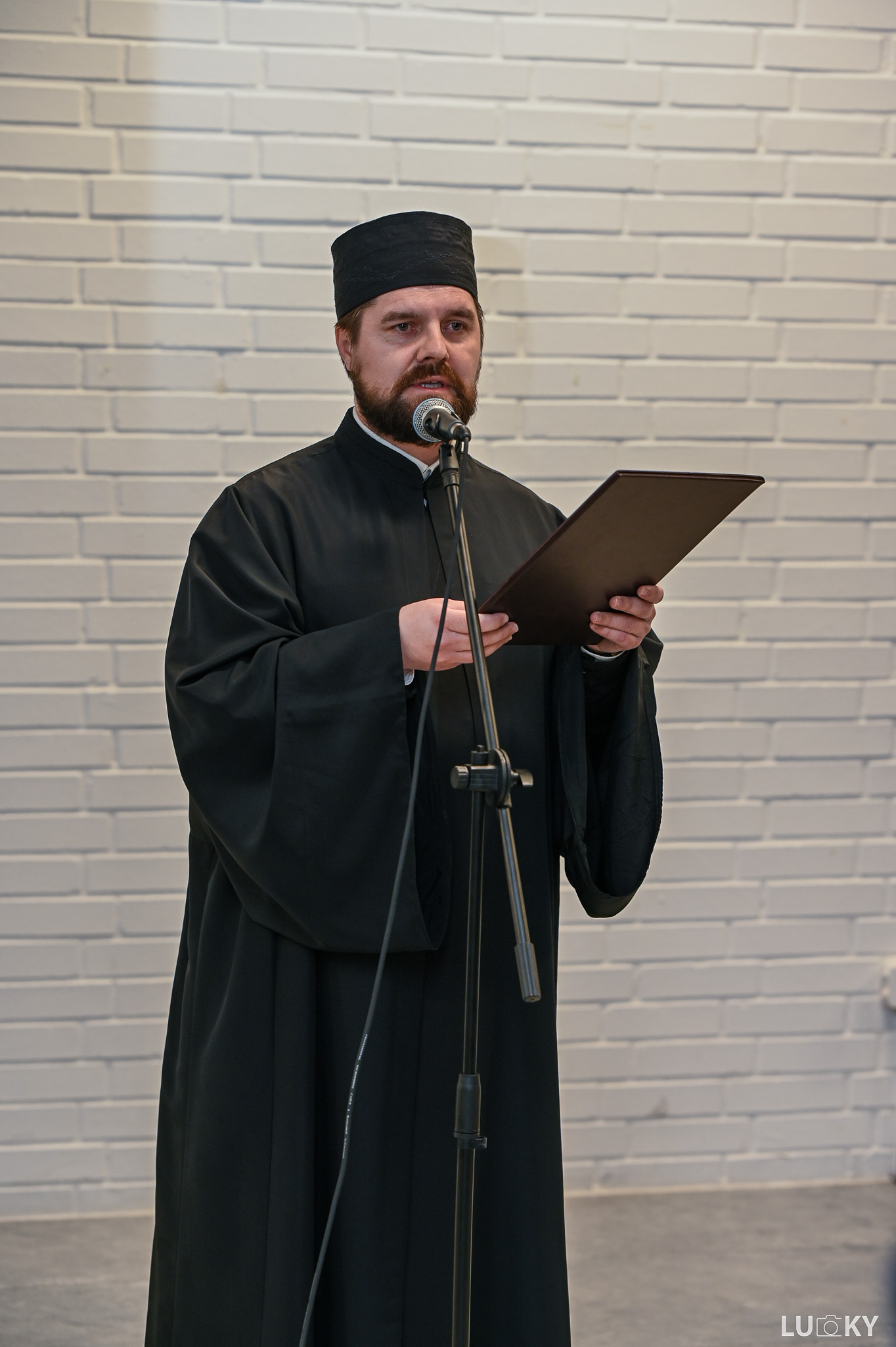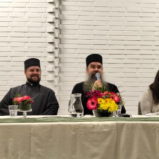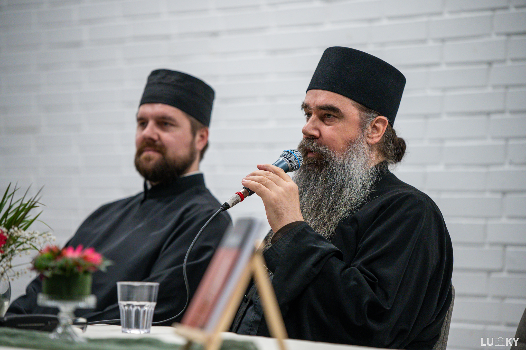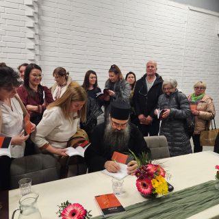 Духовно вече започело је Вечерњим богослужењем у Храму Спаљивање моштију Светог Саве, а затим у препуној дворани, отац Теодосије је говорио о животу на Светој Гори и о својој ауторској књизи „Додир“.