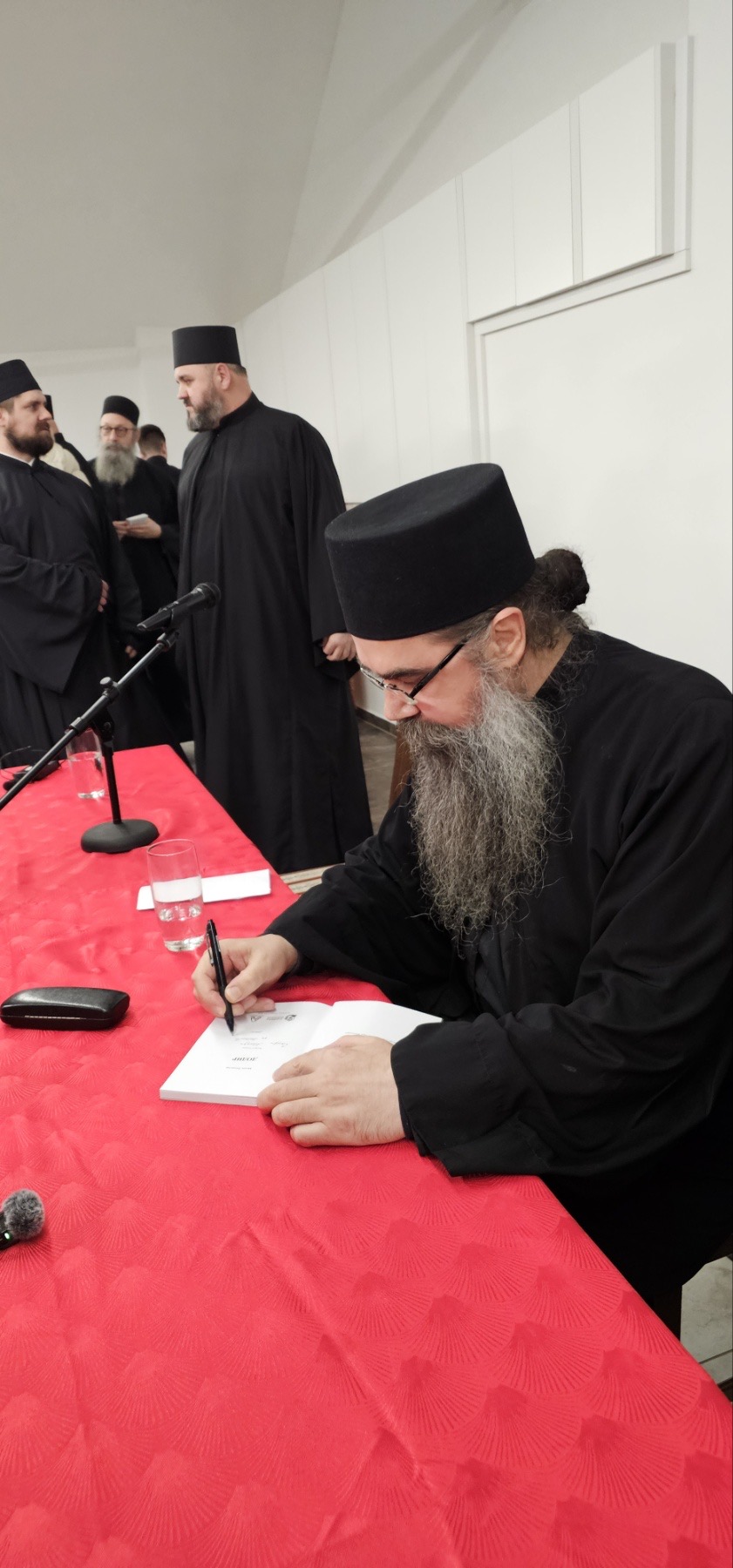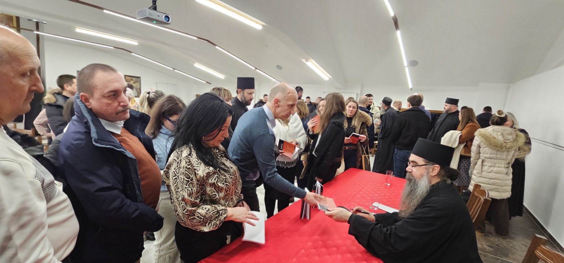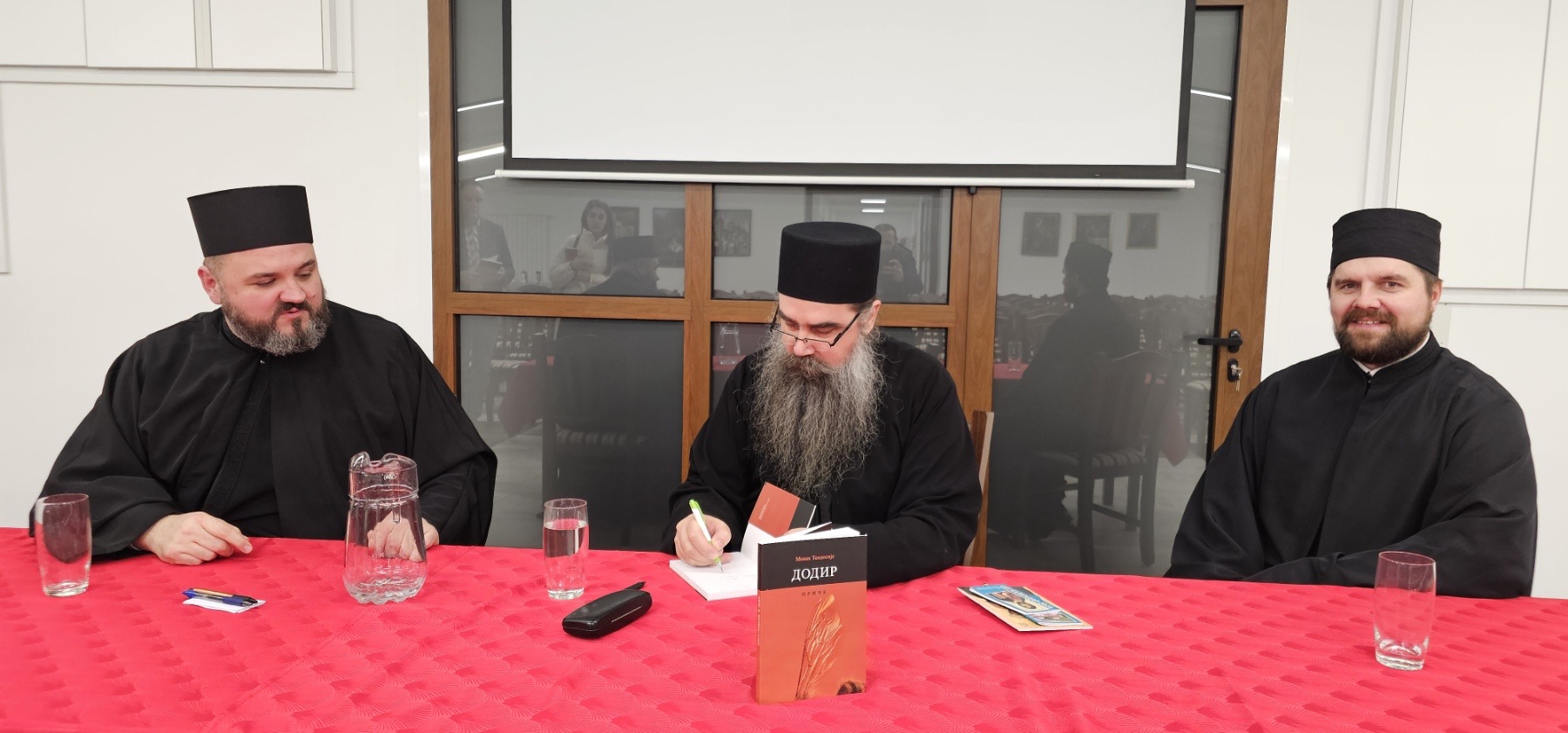 Отац Теодосије је у свом излагању говорио о животу на Светој Гори, устројству светогорске заједнице и искуству Хиландара као мјеста непрестане молитве и подвига. Осврнуо се и на обнову манастира и на поклоничко искуство многих који у Хиландар долазе тражећи духовни мир и утврђење у вјери. У наставку вечери представљена је његова књига „Додир“.
