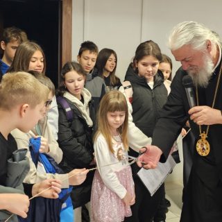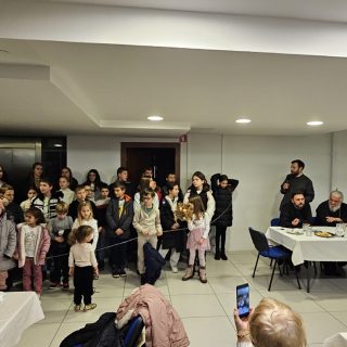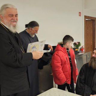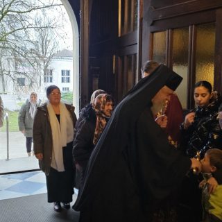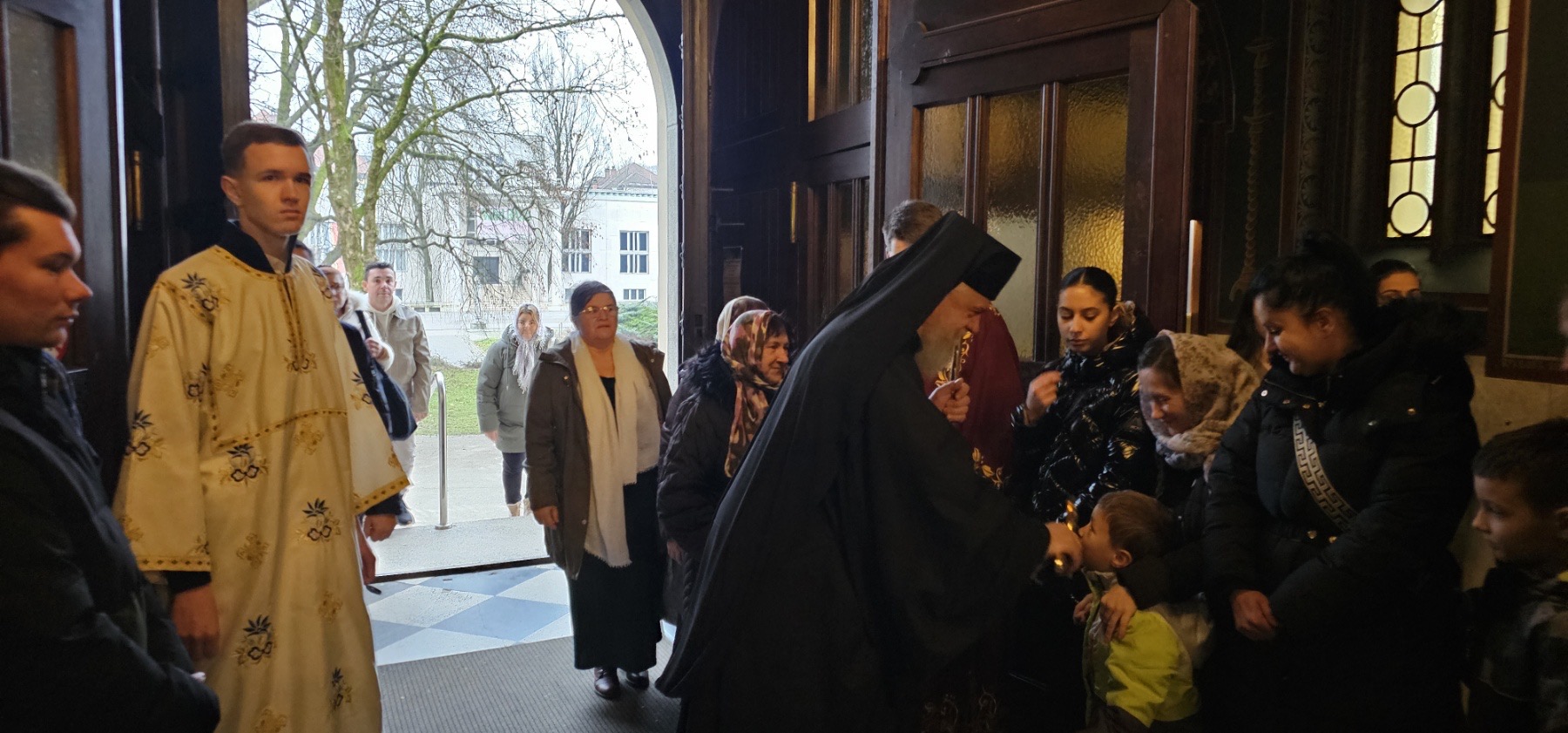 Након Свете литургије и трпезе љубави која се у љубљанској парохији одржава сваке нед‌јеље, д‌јеца, полазници вјеронауке, су, у складу са народним обичајем, свезана. Дар који су принијели у замену за одријешење било је појање пјесама спремљених за ту прилику, а епископу Кирилу даривали су и цртеже са божићном тематиком, као и божићни аранжман који су направили. Својим наступом д‌јеца су изазвала одушевљење и измамила осмијехе свих, те их је Владика одријешио, захвалио се на даровима и честитао им на сјајном извођењу пјесама.