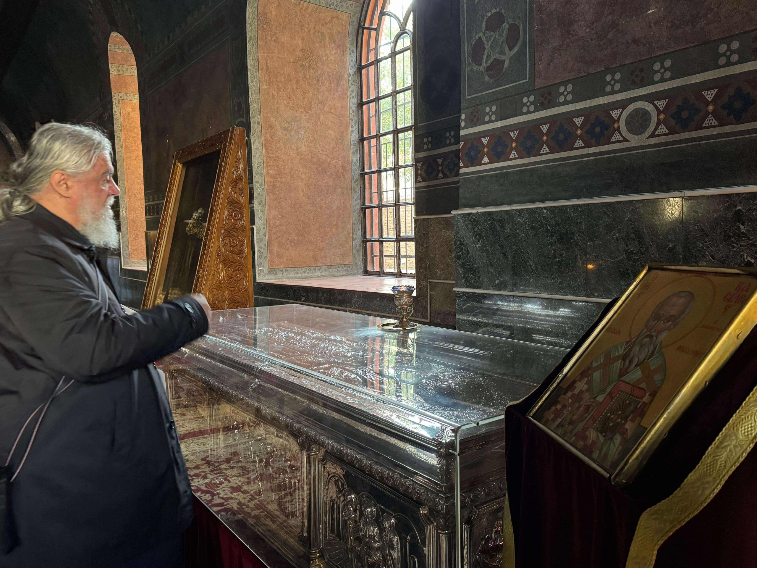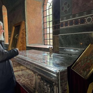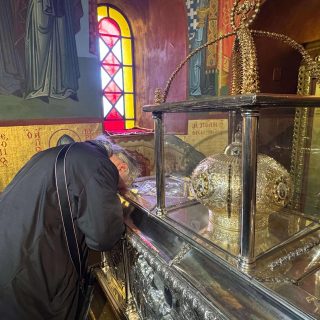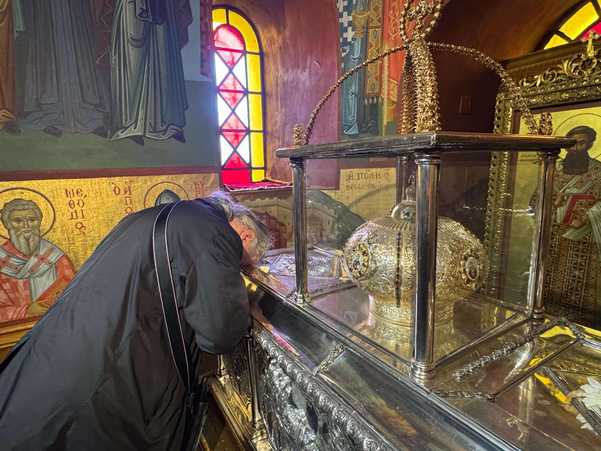 Епископ Кирило је, након поклоњења светињама Солуна, где је походио и манастир Светог Јована Богослова у Суротију и поклонио се гробу светог старца Пајсија Светогорца, стигао на Свету Гору, у манастир Хиландар, где ће, као изасланик Његове Светости Патријарха српског Порфирија, предстојати свеноћним бденијем поводом манастирске славе – празника Ваведења Пресвете Богородице.