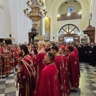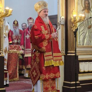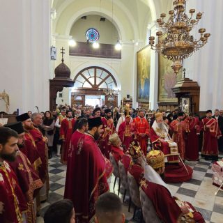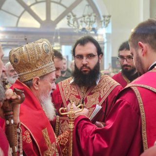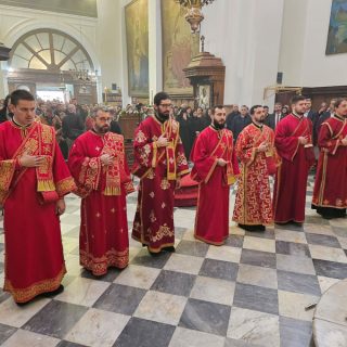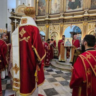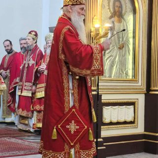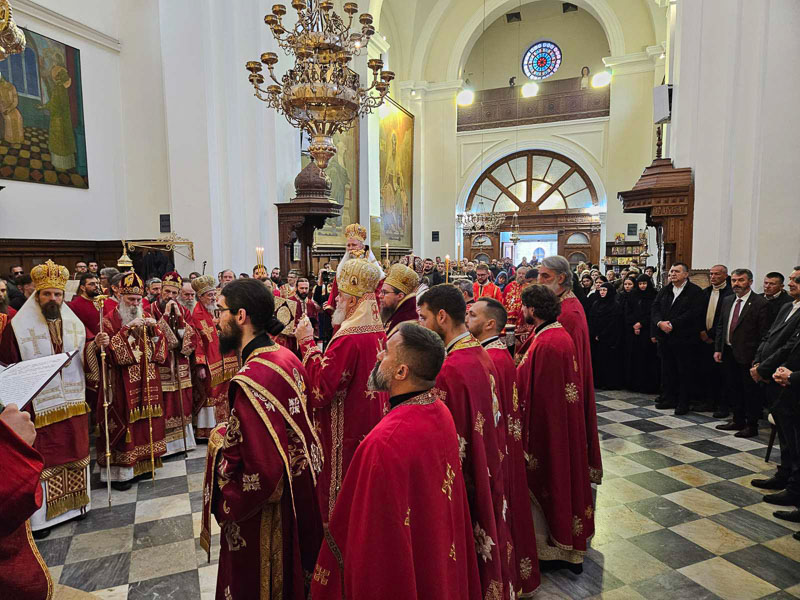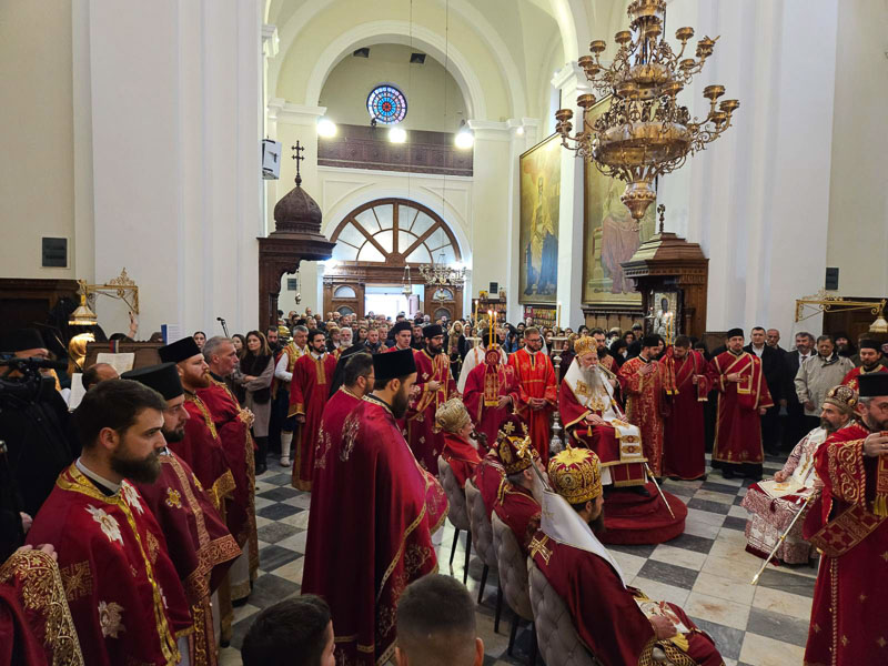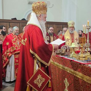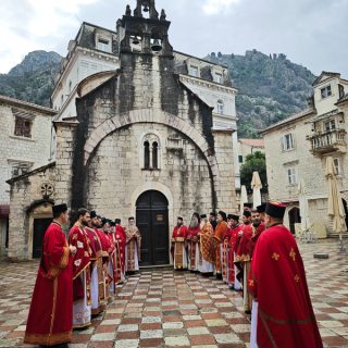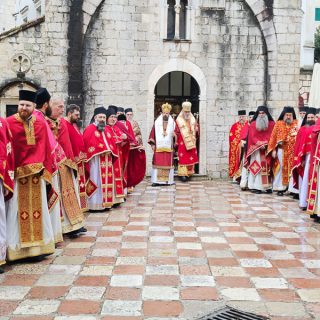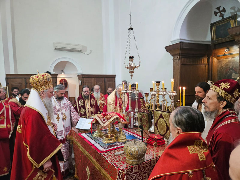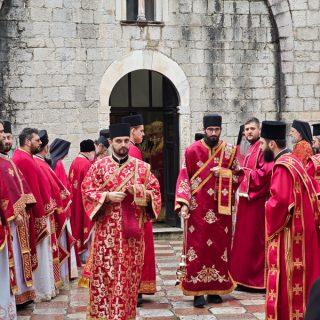 Високопреосвећена господа митрополити црногорско-приморски Јоаникије, милешевски Атанасије, будимљанско-никшићки  Методије, захумско-херцеговачки Димитрије и преосвећена господа епископи буеносајрески и јужно-централноамерички и администратор Митрополије загребачко-љубљанске Кирило, дремвитски Давид, пакрачко-славонски г. Јован и диоклијски Пајсије данас су служили Свету службу Божију, којом је началствовао Митрополит Јоаникије.