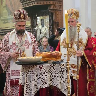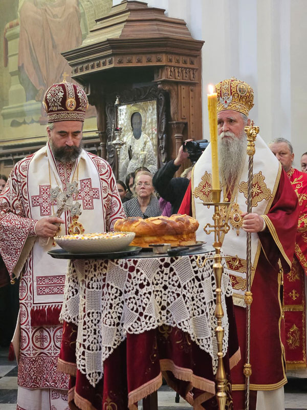 Послије прочитаног јеванђелског зачала, архипастирском беседом обратио се Митрополит Јоаникије, док је послије резања славског колача бесједио Владика Кирило.