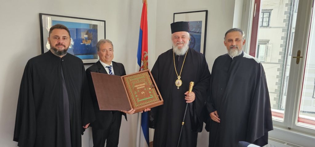 Његово преосвештенство др Кирило Бојовић, Епископ буеносајрески и јужно-централноамерички, уједно и администратор Митрополије загребачко-љубљанске, посетио је данас Амбасаду Републике Србије у Љубљани, где се састао са амбасадором Ивом Војводићем. У делегацији су били и протојереј Александар Обрадовић и протојереј Борислав Ливопољац. Ова посета представља важан корак у наставку сарадње између Српске православне цркве и институција […]