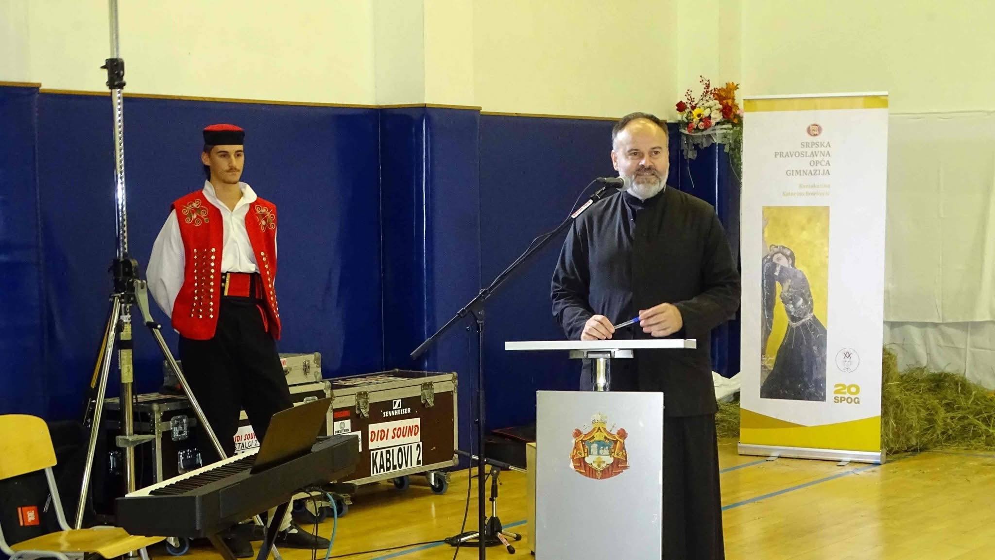 У уводном дијелу програма госте је поздравио протојереј-ставрофор Слободан Лалић, директор Гимназије истакавши ентузијазам ученика који гаје љубав према народној игри и обичајима, а дружећи се у фолклорно-пјевачкој секцији јачају пријатељства, размјењују искуства и од Бога дароване им таланте. Директор Лалић је пренио благослов епископа Кирила, администратора Митрополије загребачко-љубљанске који пружа снажну подршку раду фолклорно-пјевачке секције Гимназије.