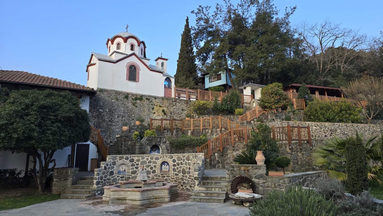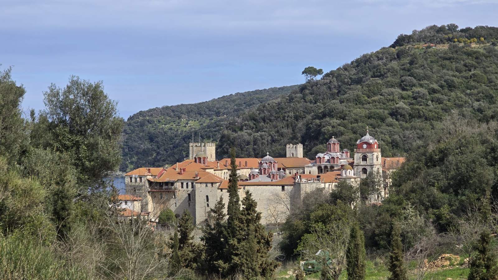 Током 24 часа, које проведосмо на овом месту, обишли смо манастирски комплекс, гробље, костурницу, пирг св. Саве, бунар св. Саве, као и оближњи манастир Есфигмен, у којем су поклоници дочекани са пуно љубави. Посебан украс била су богослужења у вечерњим и раним јутарњим сатима ( од 3 – 6 часова ујутру). Јутарња киша спречила нас је у обиласку Милутиновог пирга, као и келије Самарије.