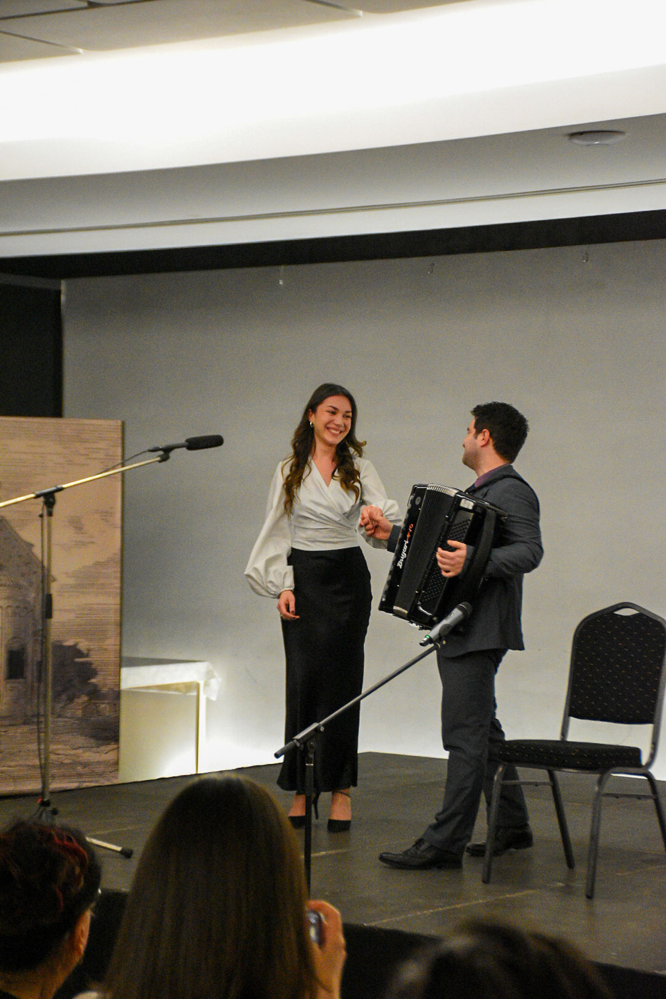 Програм је водила госпођица Анђела Недељковић, која је својим надахнутим казивањем повезивала поједине сегменте свечаности. У уметничком делу програма наступили су господин Миле Ђурђевић, хармоникаш, као и глумац Иван Вучковић, који је надахнуто извео монодраму „Карађорђе“. Свечаност су својим појањем украсили Женски црквени хор Храма светих Кирила и Методија у Љубљани и Љубљански византијски хор, док је Анђела Недељковић наступила и као солиста.