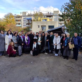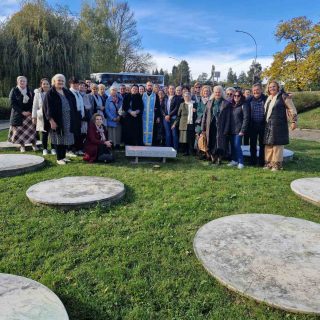 Након славског ручка смо са гостима из Загреба и Градишке и њиховом поклоничком групом коју води попадија Госпана Ђурић посјетили парк Диане Будисављевић у Сиску, гдје се налази споменик светој дјеци мученицима сисачким, на мјесту гдје је у Другом свјетскм рату био усташки логор за дјецу, те смо им се помолили као новим мученицима и заступницима пред Господом.