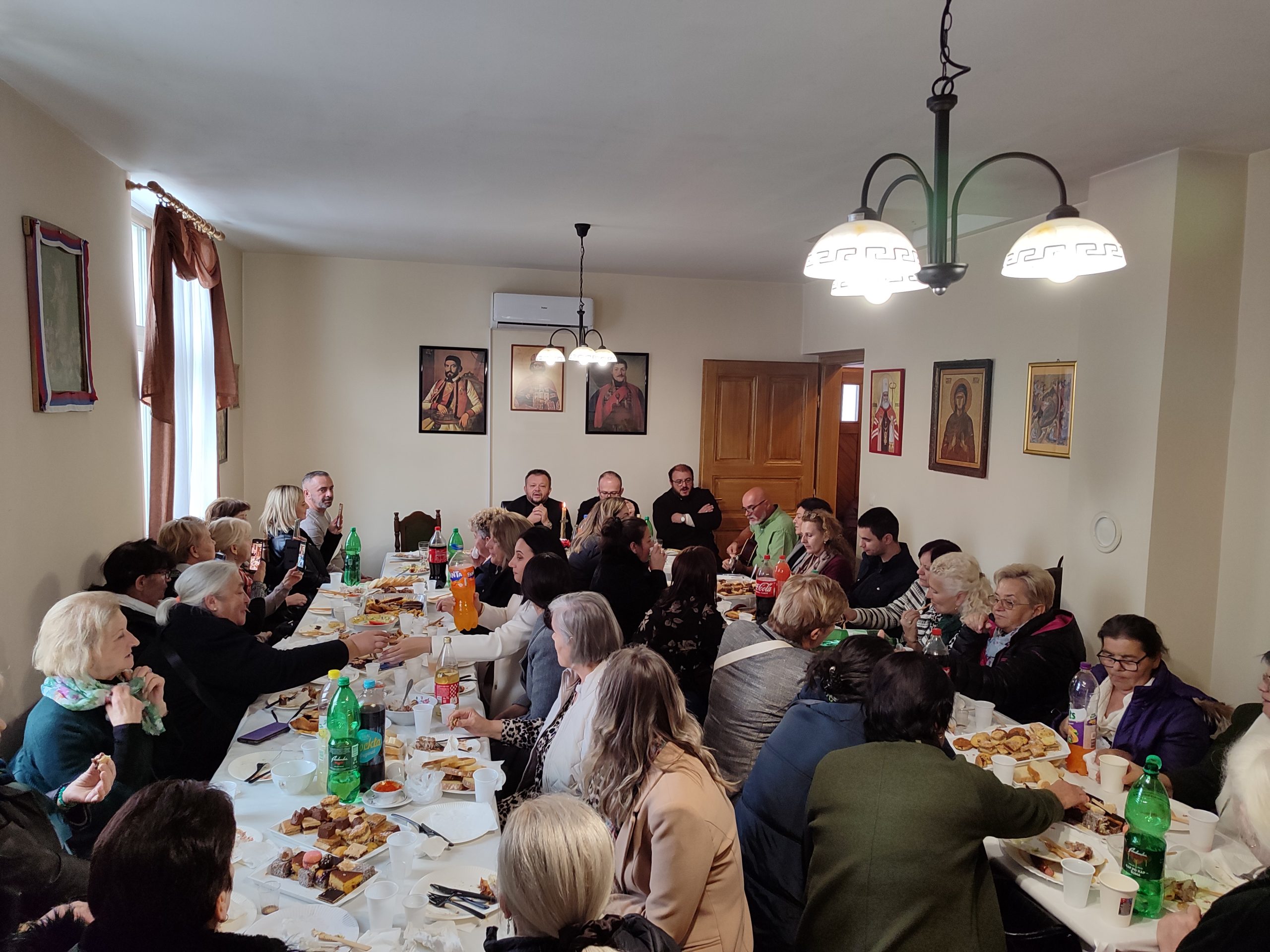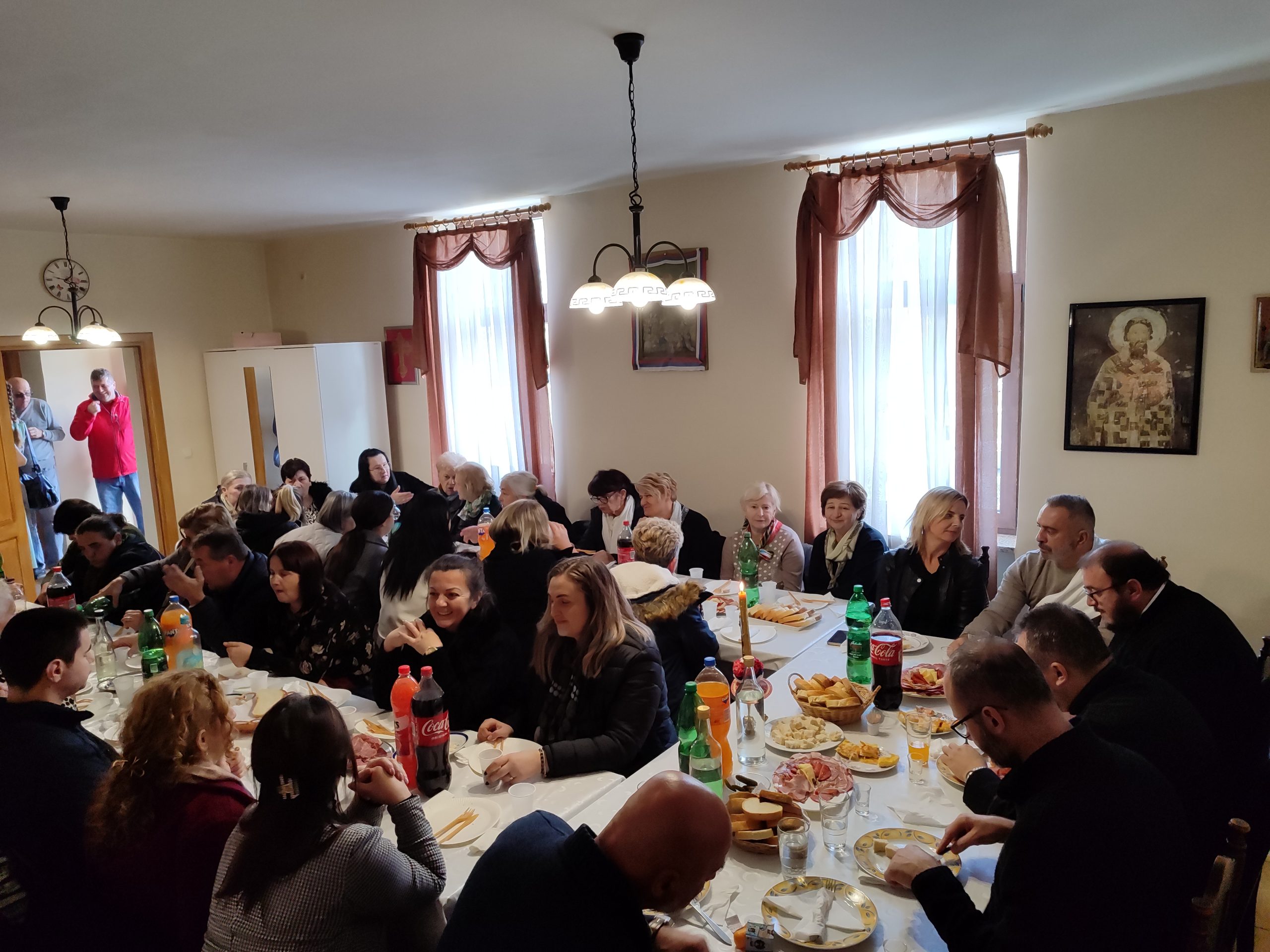 Послије освештаних славских дарова и Свете литургије, празнично весеље се наставило у парохијског сали.