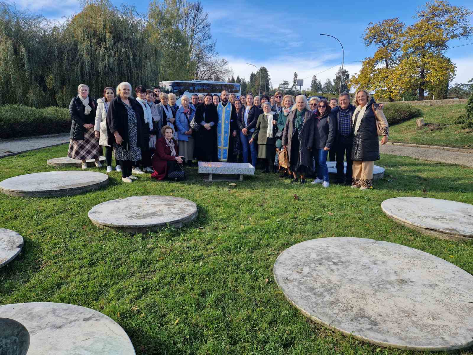 Након славског ручка смо са гостима из Загреба и Градишке и њиховом поклоничком групом коју води попадија Госпана Ђурић посјетили парк Диане Будисављевић у Сиску, гдје се налази споменик светој дјеци мученицима сисачким, на мјесту гдје је у Другом свјетскм рату био усташки логор за дјецу, те смо им се помолили као новим мученицима и заступницима пред Господом.