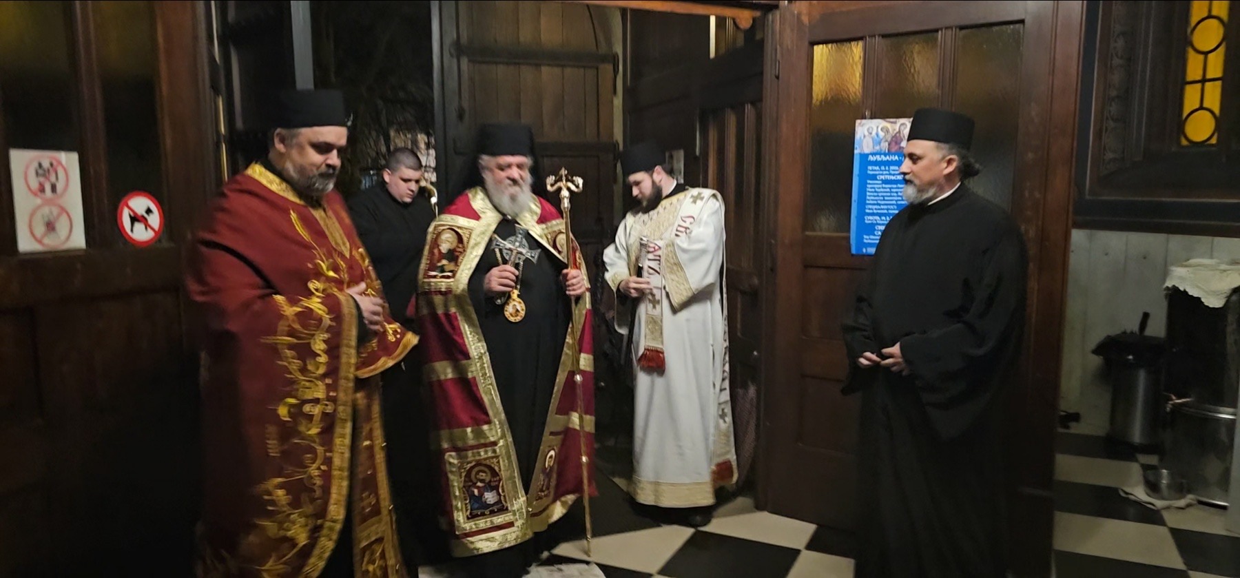 У суботу, 14/1. фебруара, уочи Сретења Господњег, у храму Светих Кирила и Методија у Љубљани, служено је свеноћно бденије са Светом литургијом. Бденијем је предстојао Његово Преосвештенство Епископ буеносајрески и јужно-централноамерички др Кирило, а саслуживало му је љубљанско свештенство и ђакон Александар Лукић из Загреба.
