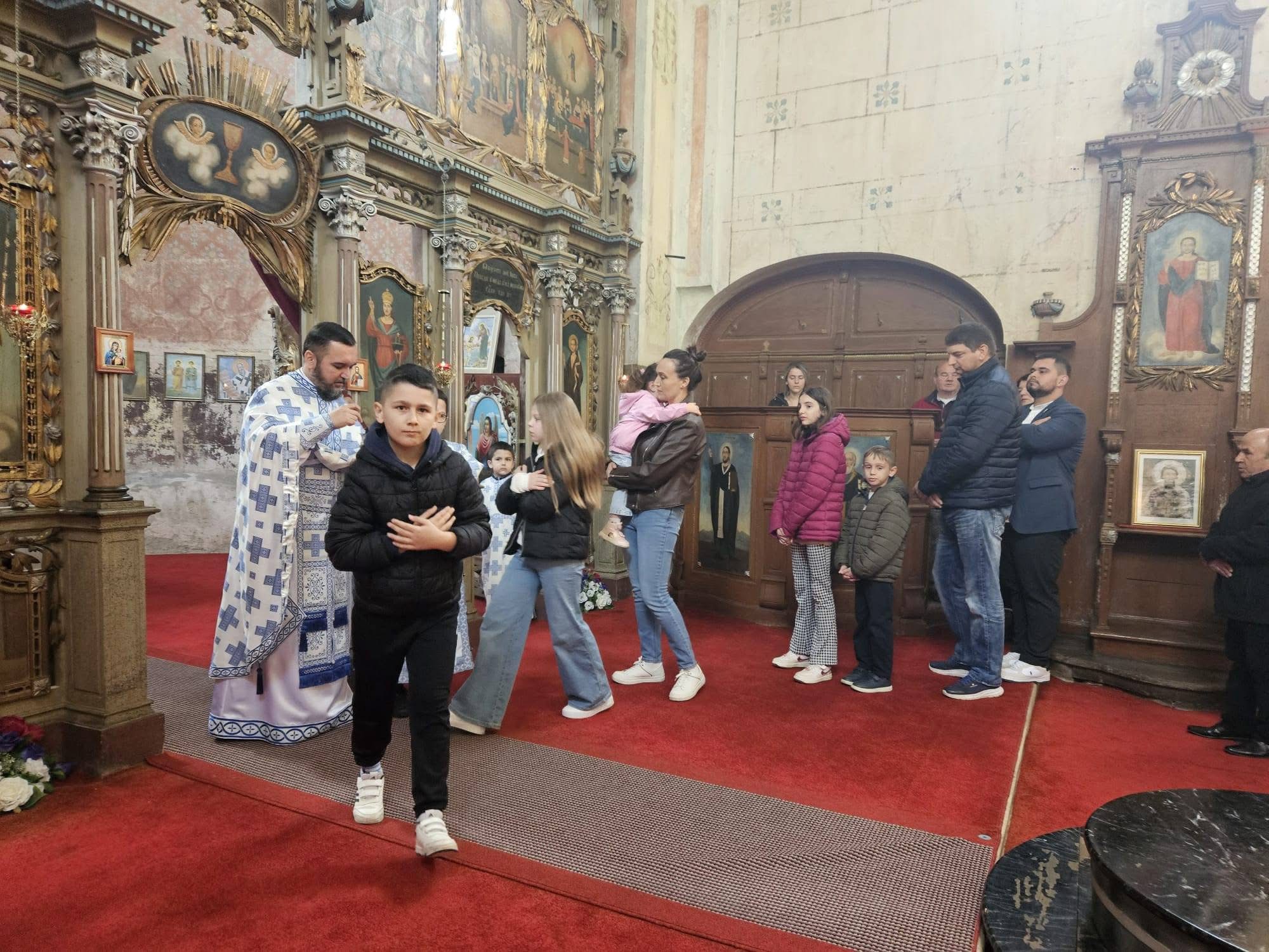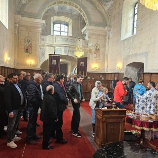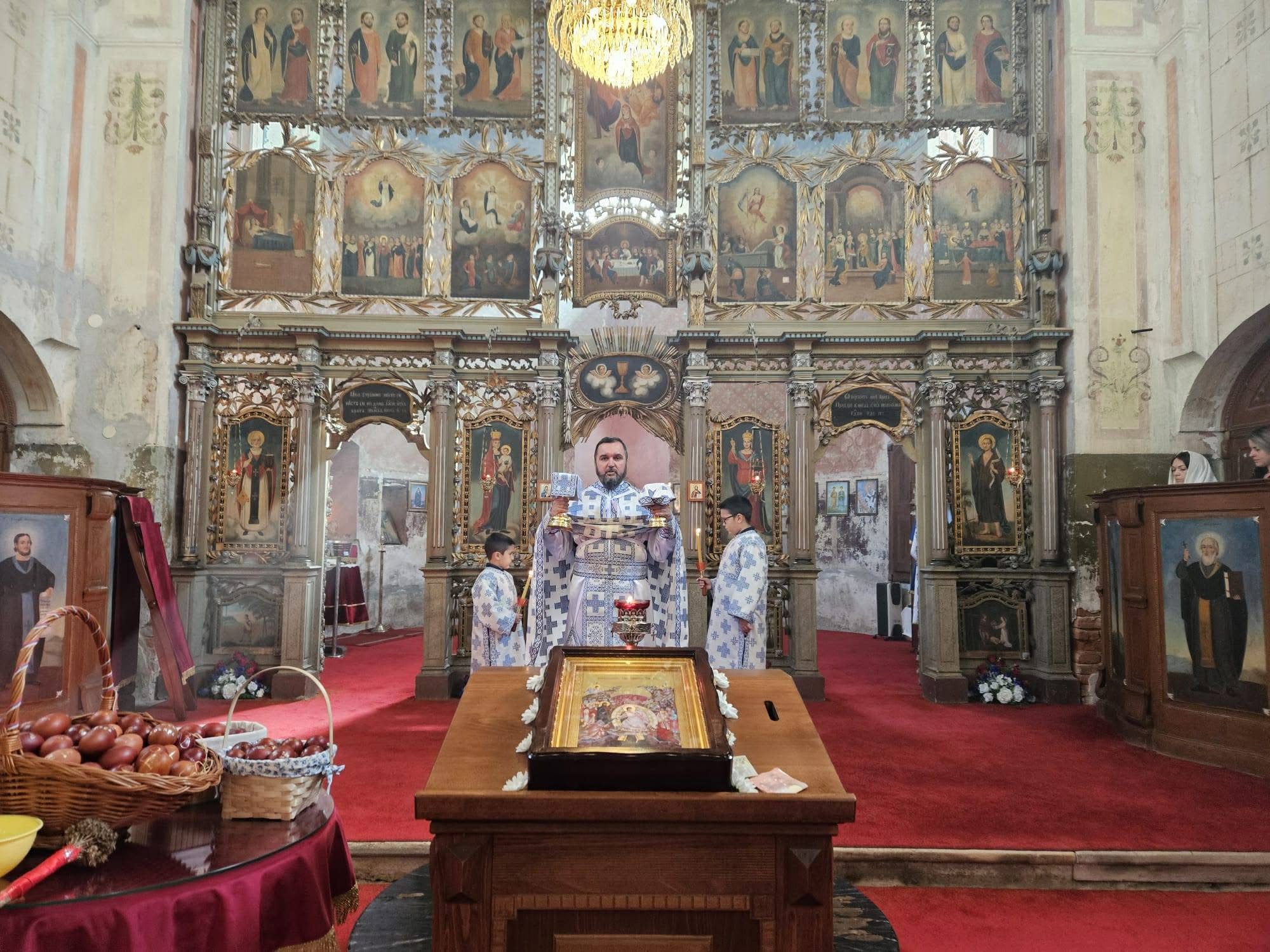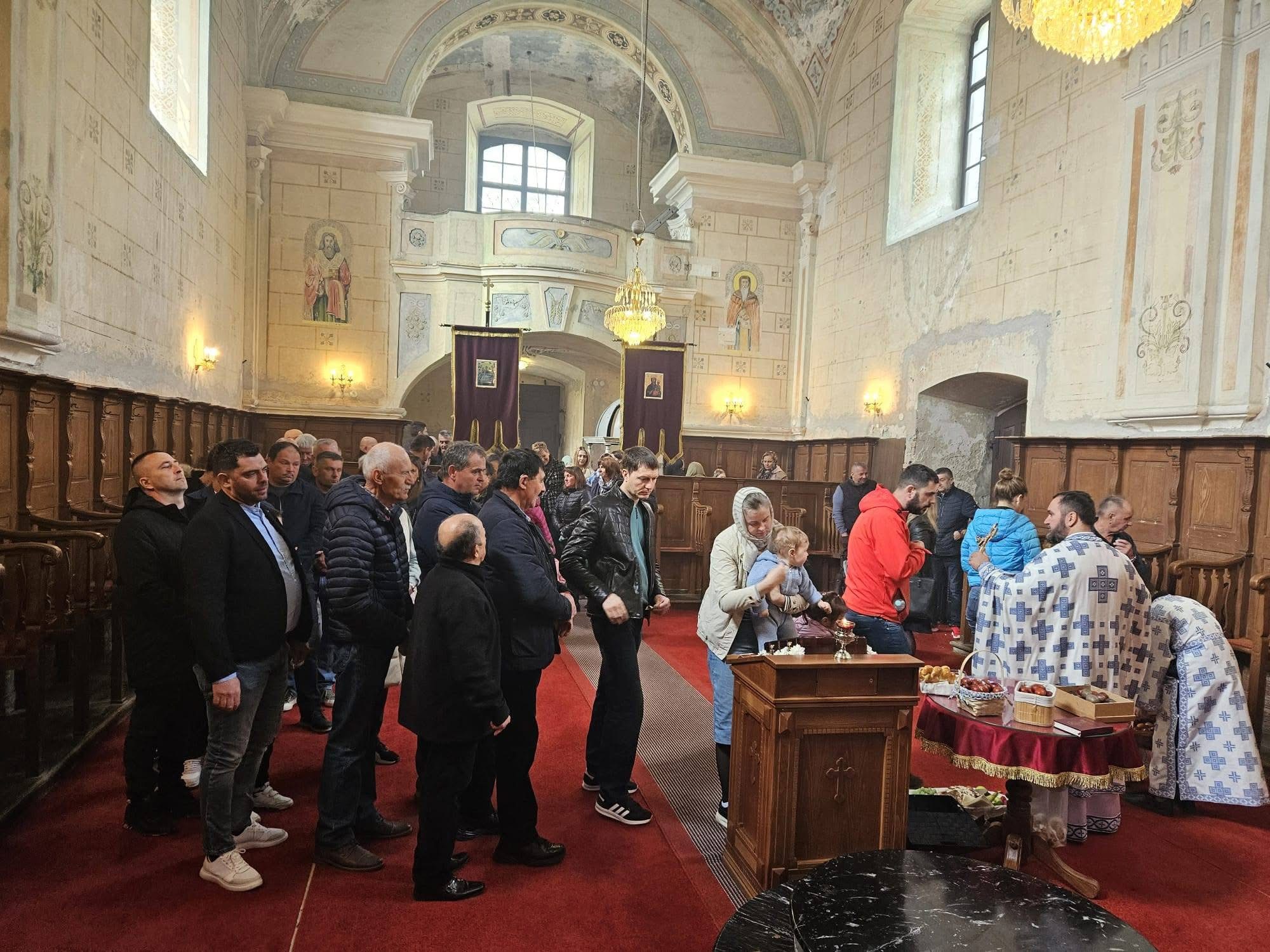 Sabrani vjerni narod ispunio je hram, učestvujući u molitvenom sabranju i pristupajući Svetoj tajni pričešća, u radosti praznika Vaskrsenja Hristovog.