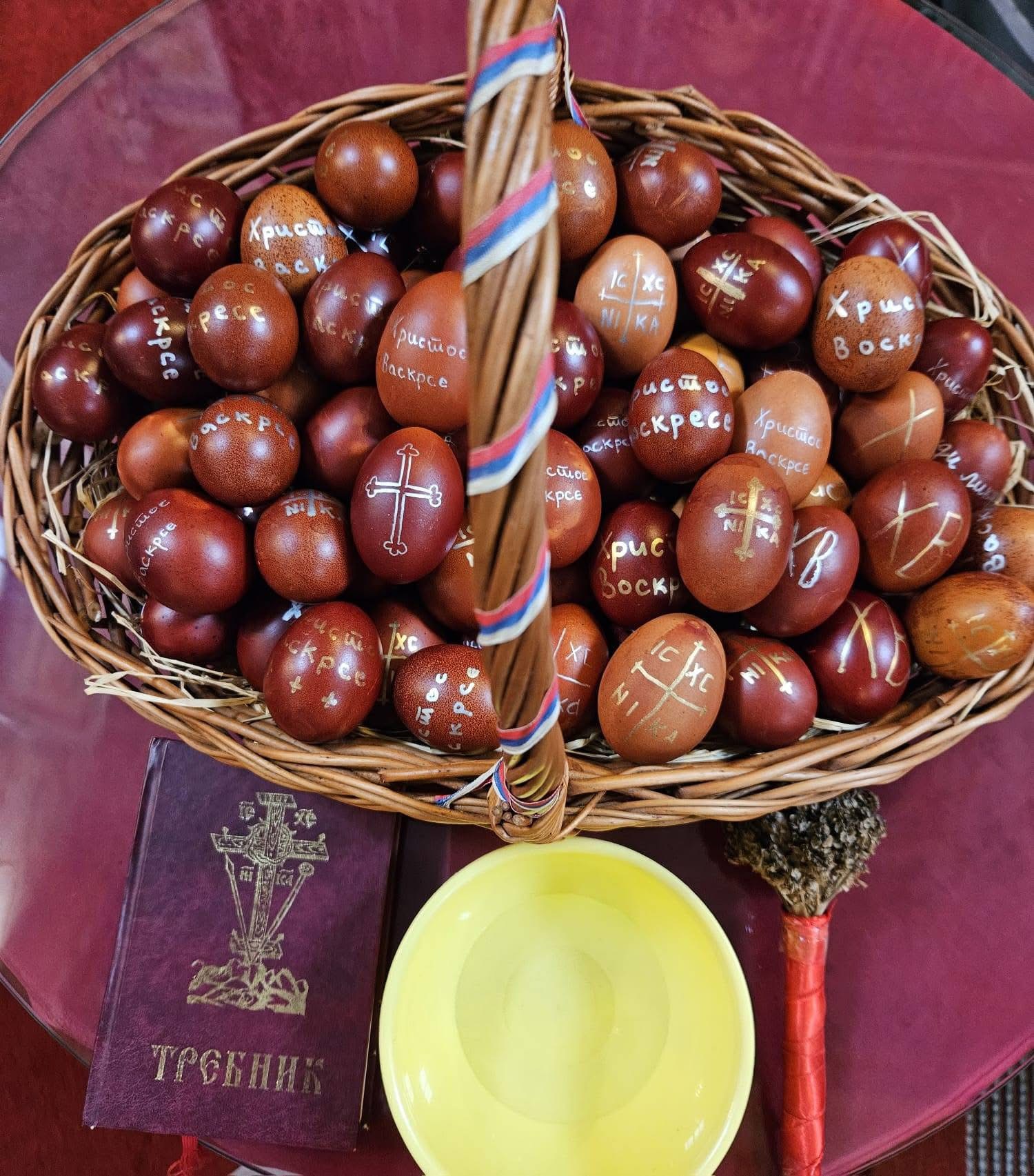 Vjernom narodu podijeljena su osveštana vaskršnja jaja, uz radosni pozdrav: „Hristos vaskrse – Vaistinu vaskrse!“