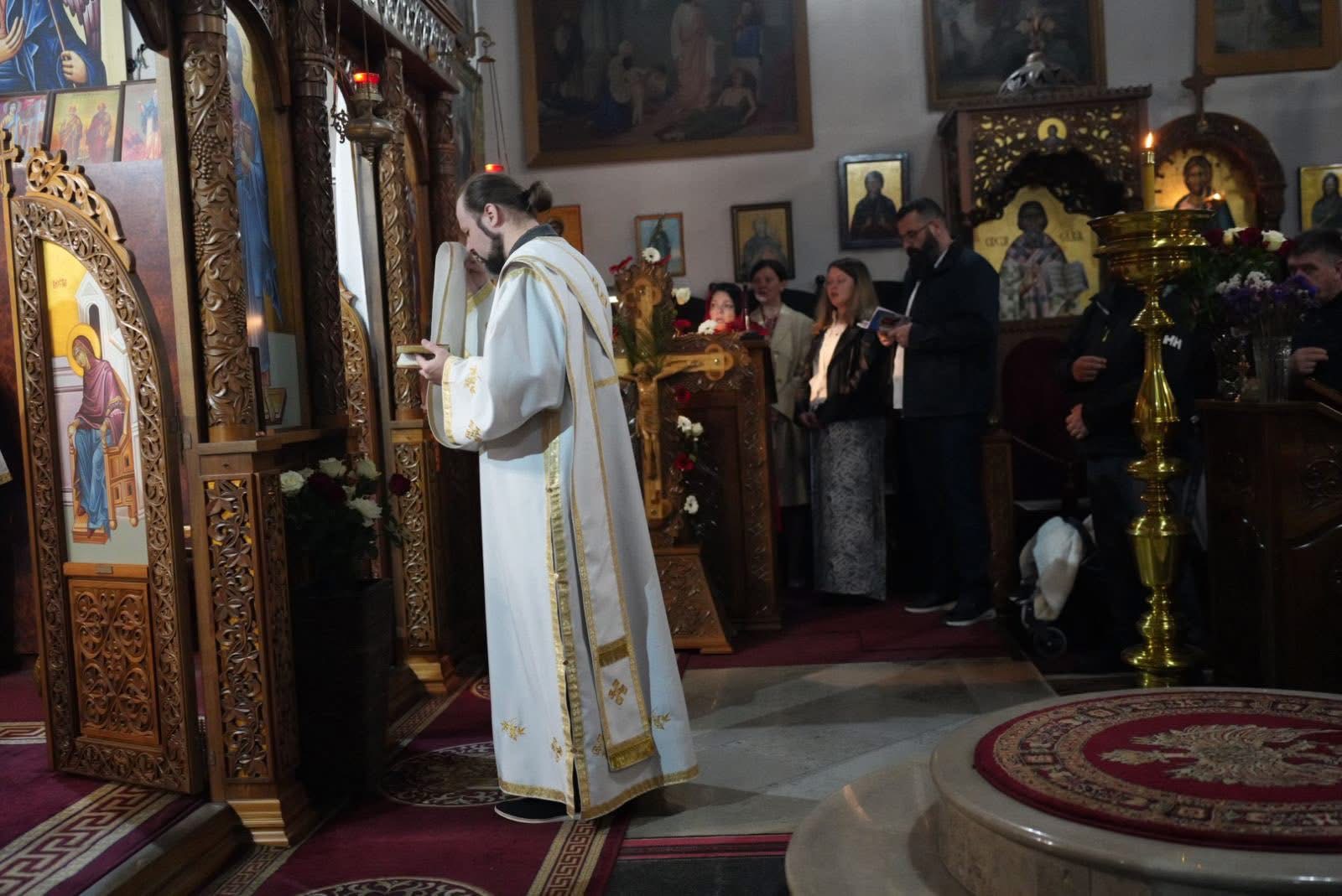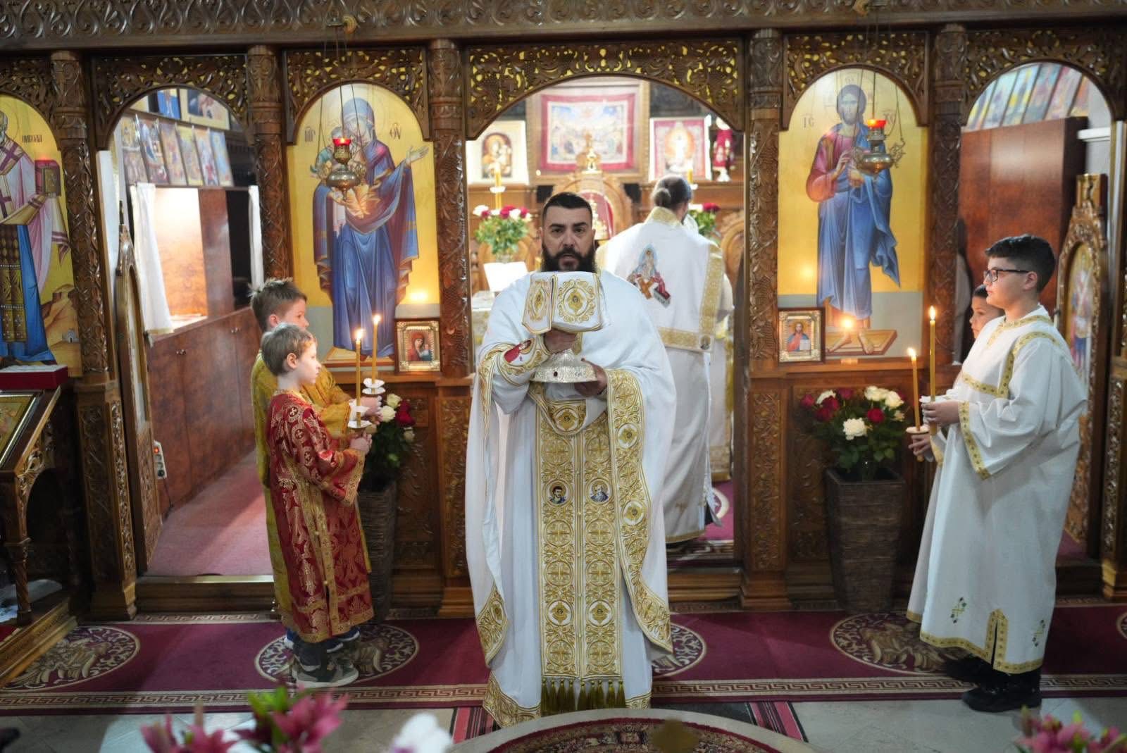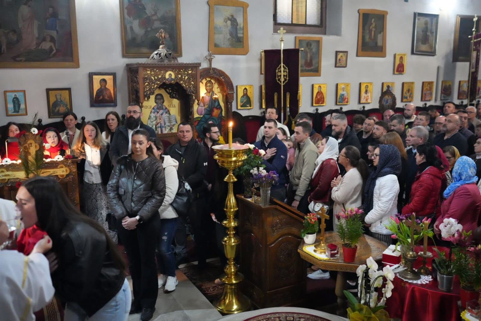 Васкршњу Свету Литургију, служену у 5:00 часова ујутру, предводио је старешина храма, јереј Дејан Мандић. Храм је био испуњен до последњег мјеста, а вјерни народ се сабрао у духу молитве, љубави и радости Васкрсења Христовог.