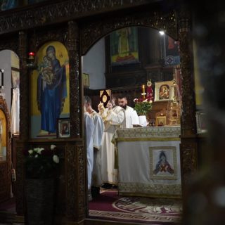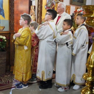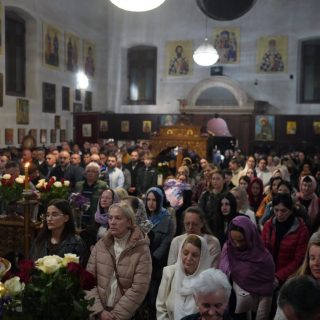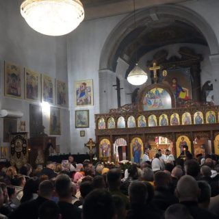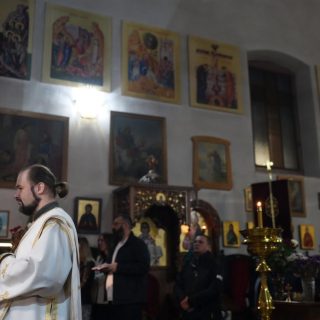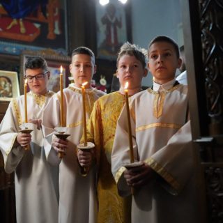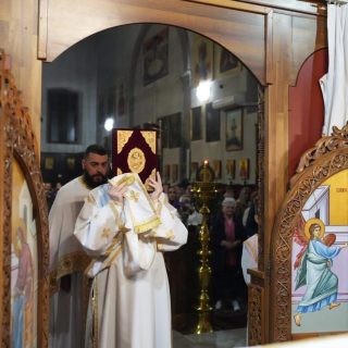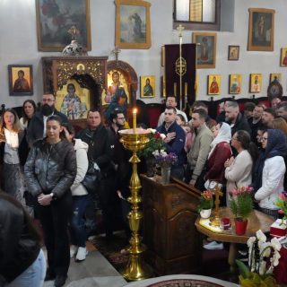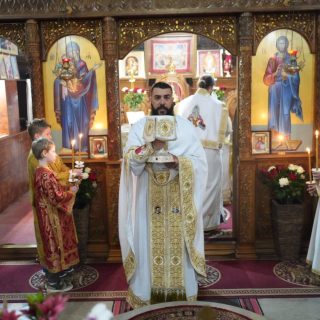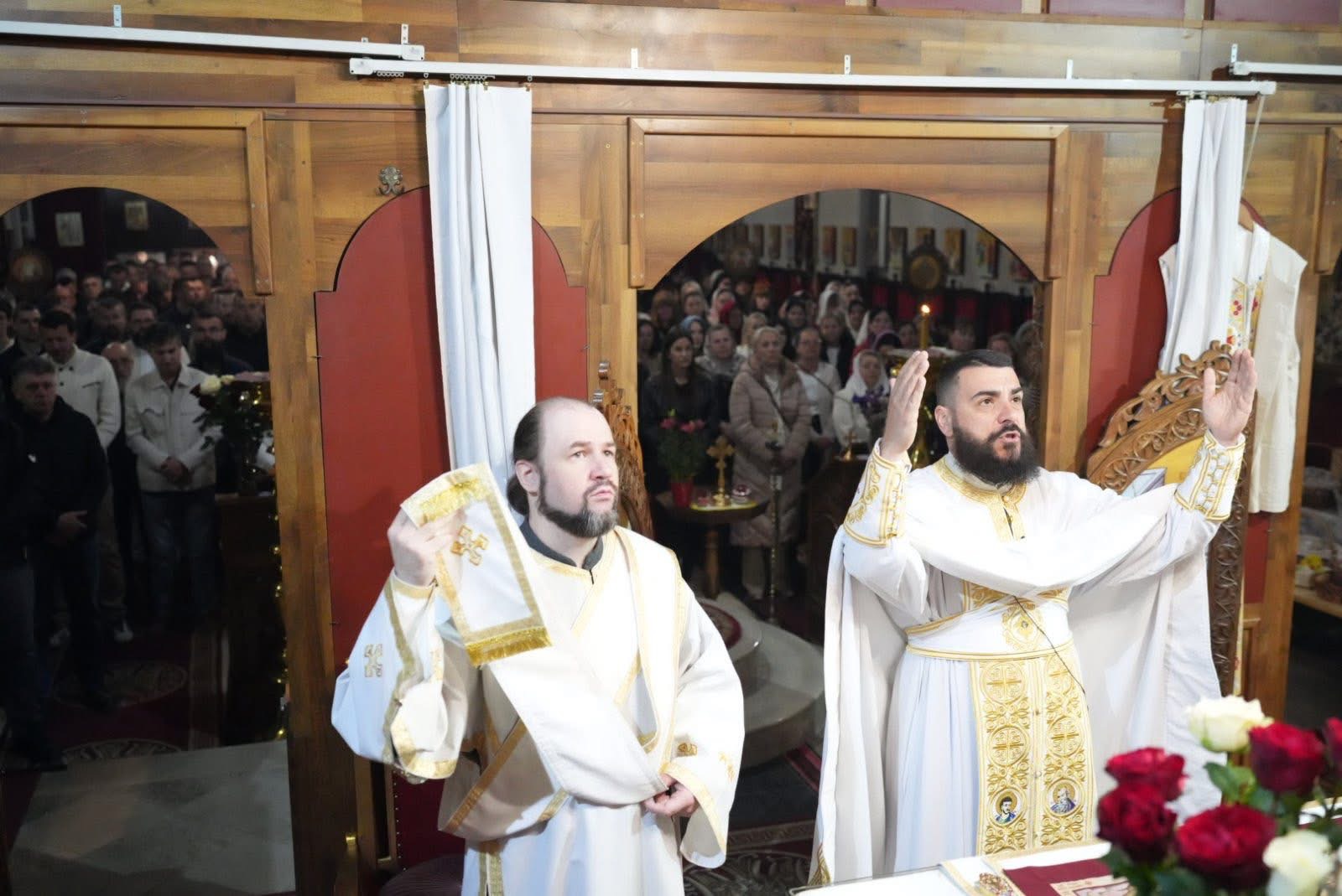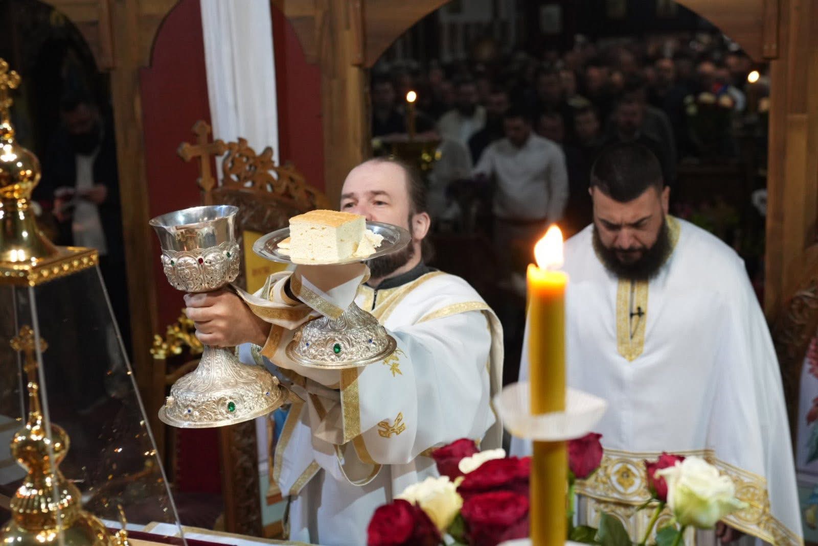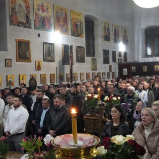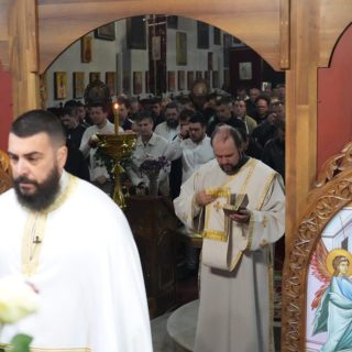 Васкршњу Свету Литургију, служену у 5:00 часова ујутру, предводио је старешина храма, јереј Дејан Мандић. Храм је био испуњен до последњег мјеста, а вјерни народ се сабрао у духу молитве, љубави и радости Васкрсења Христовог.