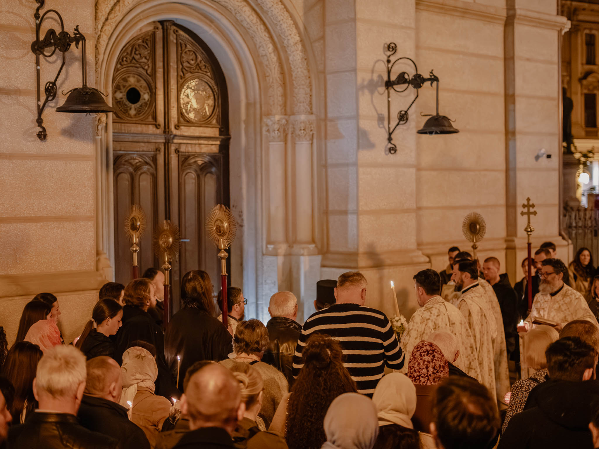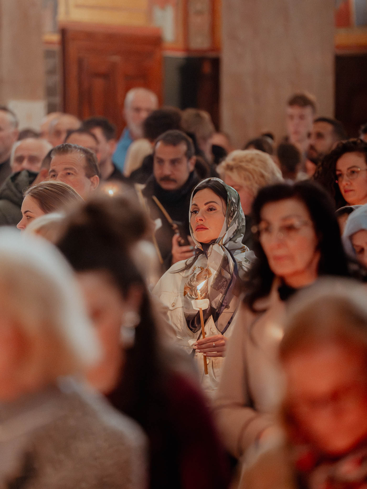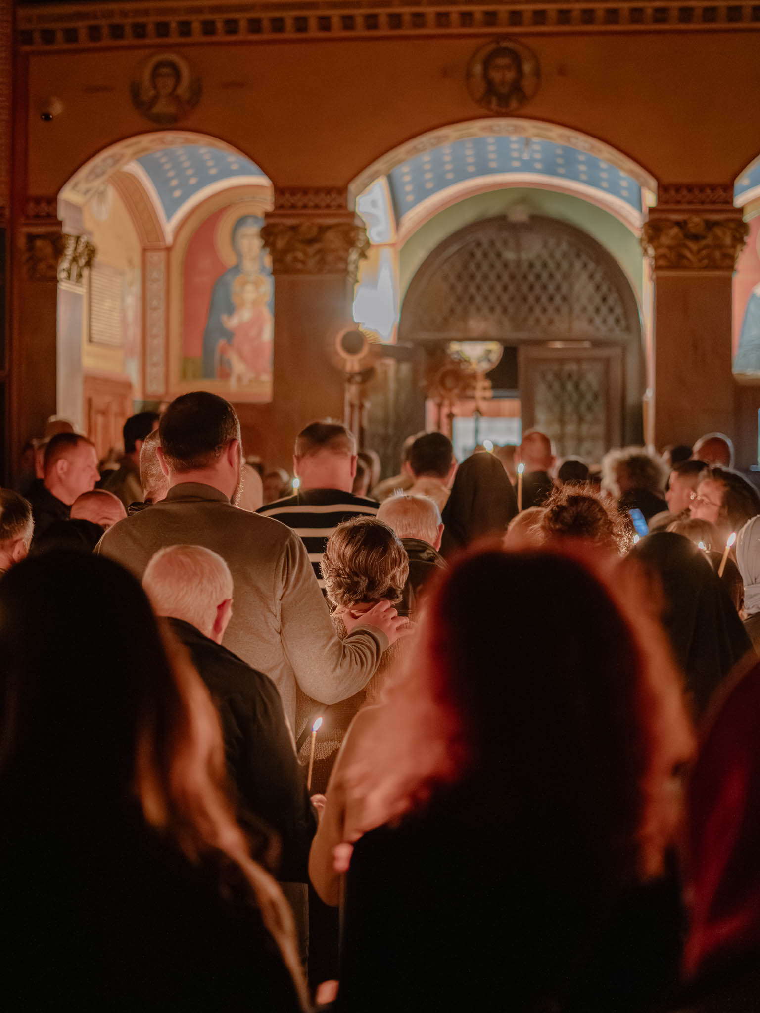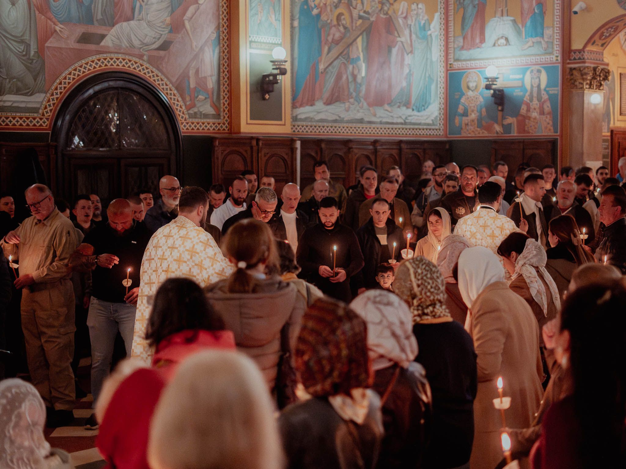 Сабрани вјерни народ испунио је храм радошћу и молитвом, свједочећи о побједи живота над смрћу и свјетлости над тамом, поздрављајући једни друге радосним поздравом: Христос васкрсе – Ваистину васкрсе!