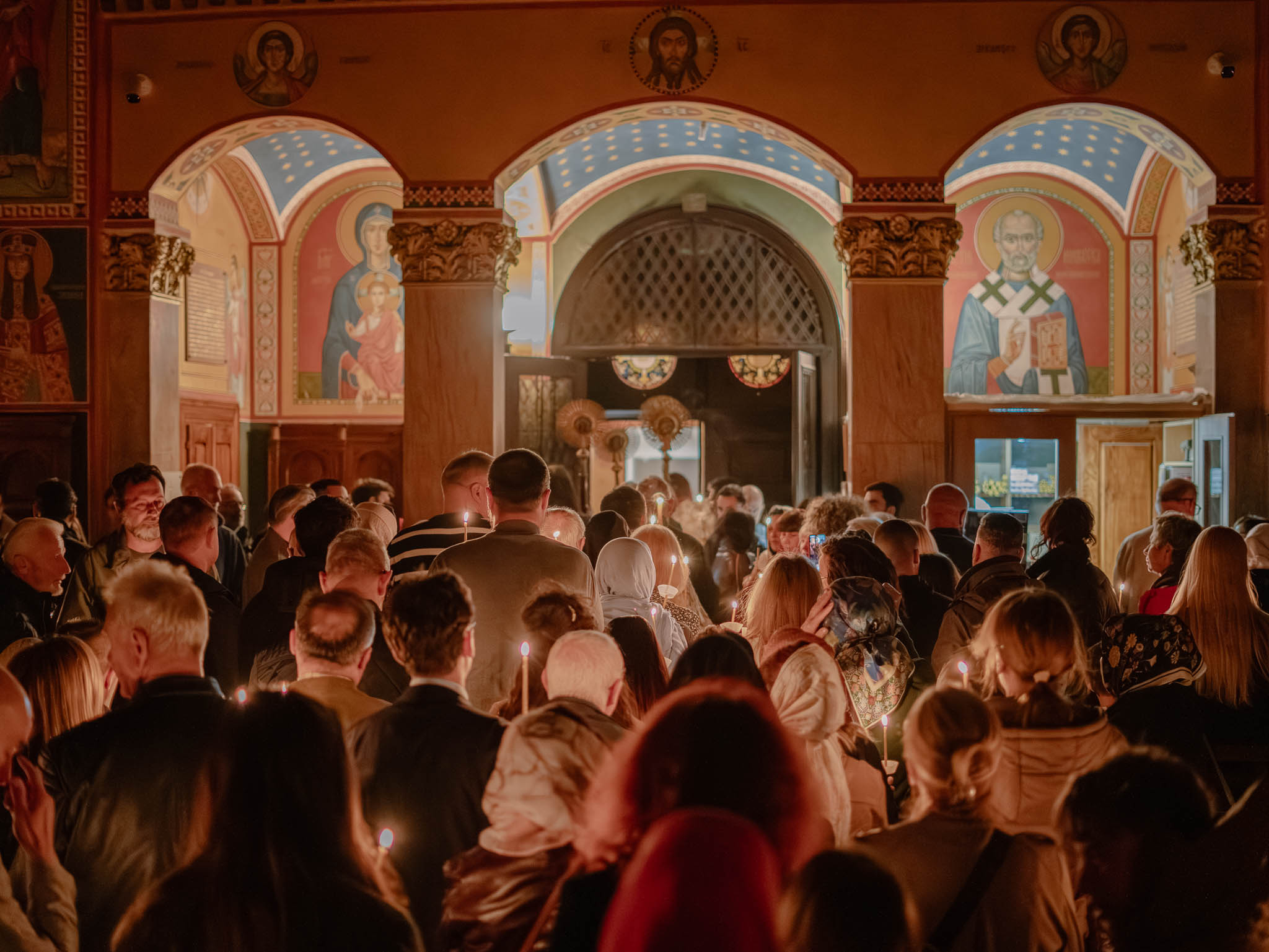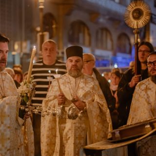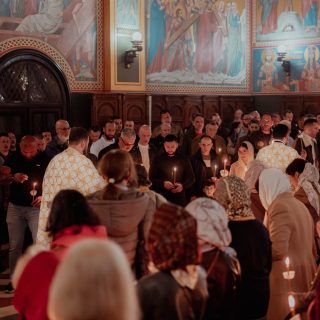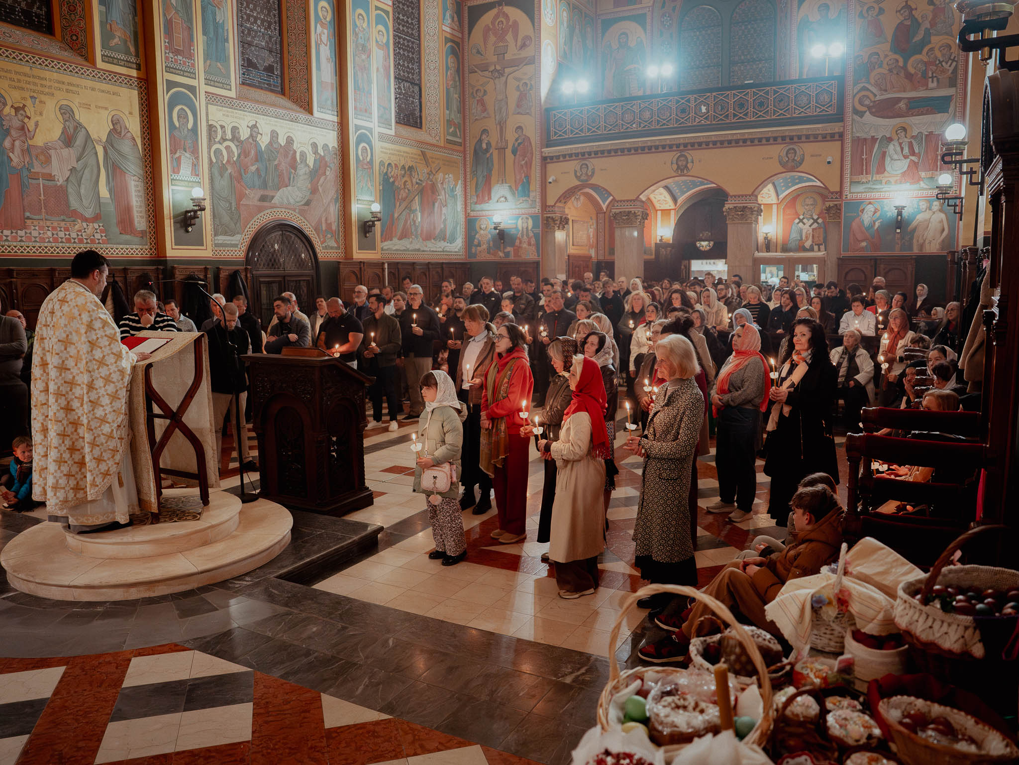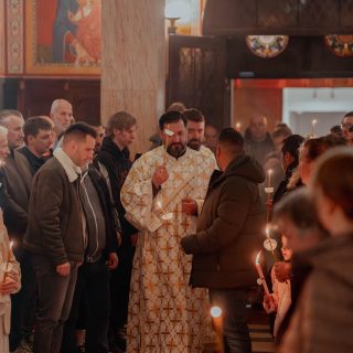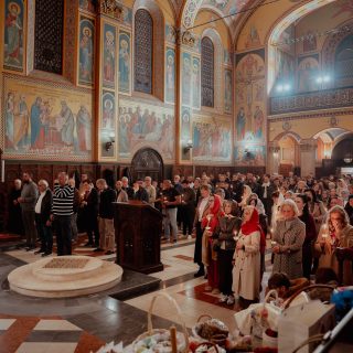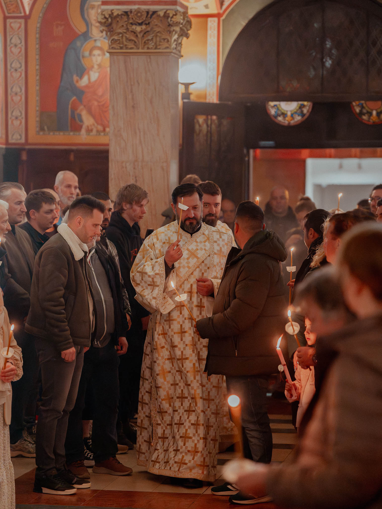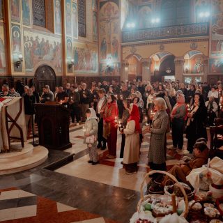 Сабрани вјерни народ испунио је храм радошћу и молитвом, свједочећи о побједи живота над смрћу и свјетлости над тамом, поздрављајући једни друге радосним поздравом: Христос васкрсе – Ваистину васкрсе!