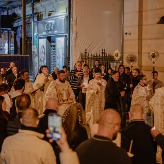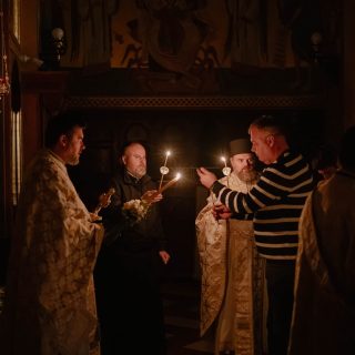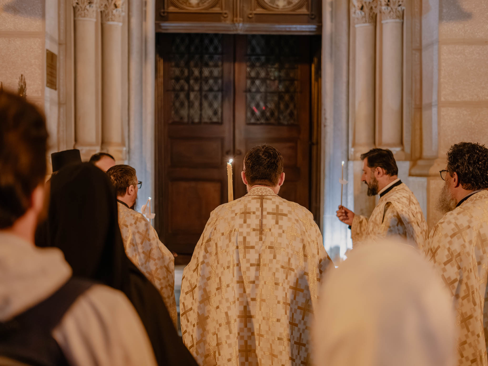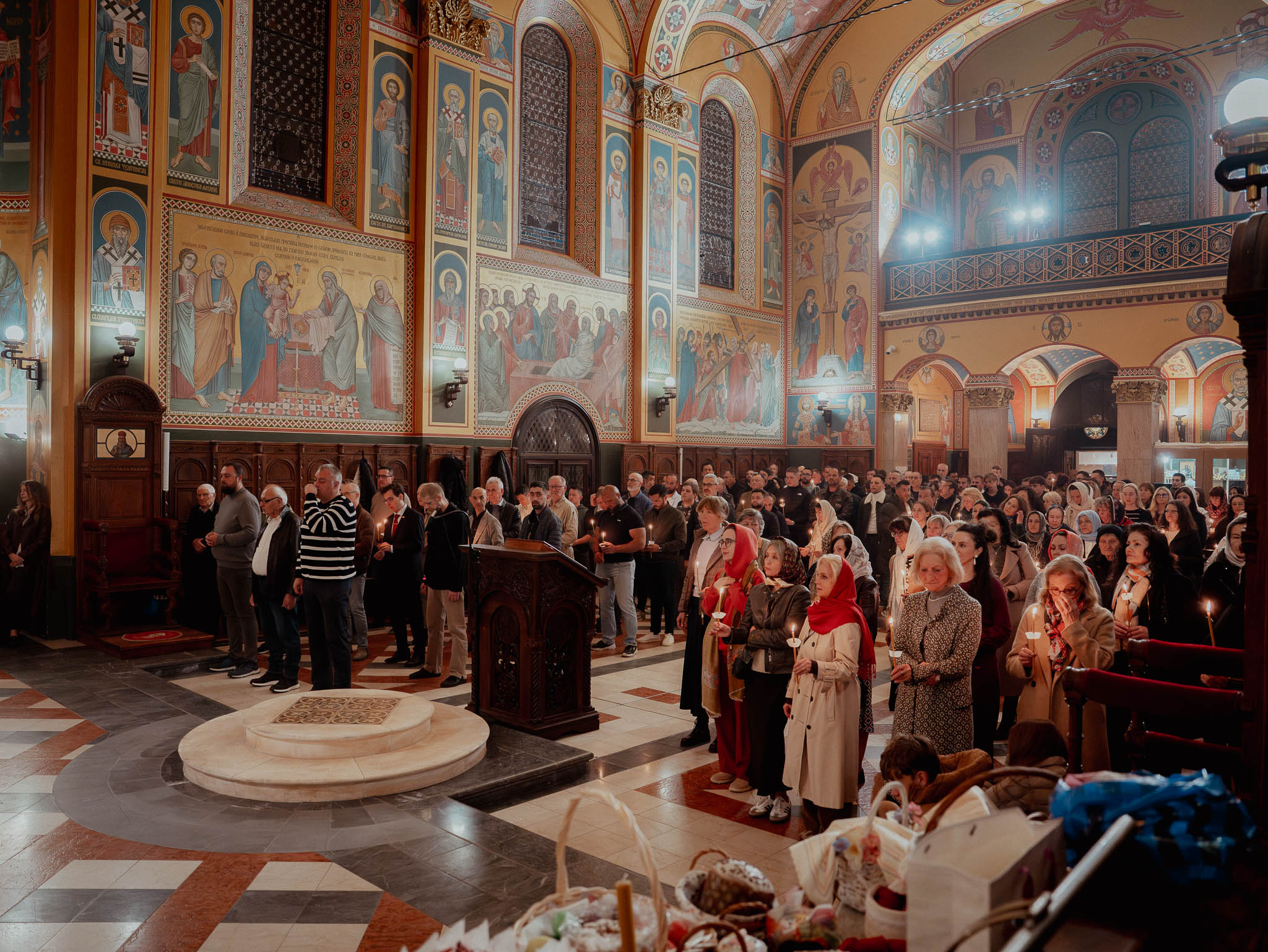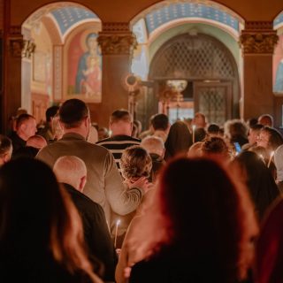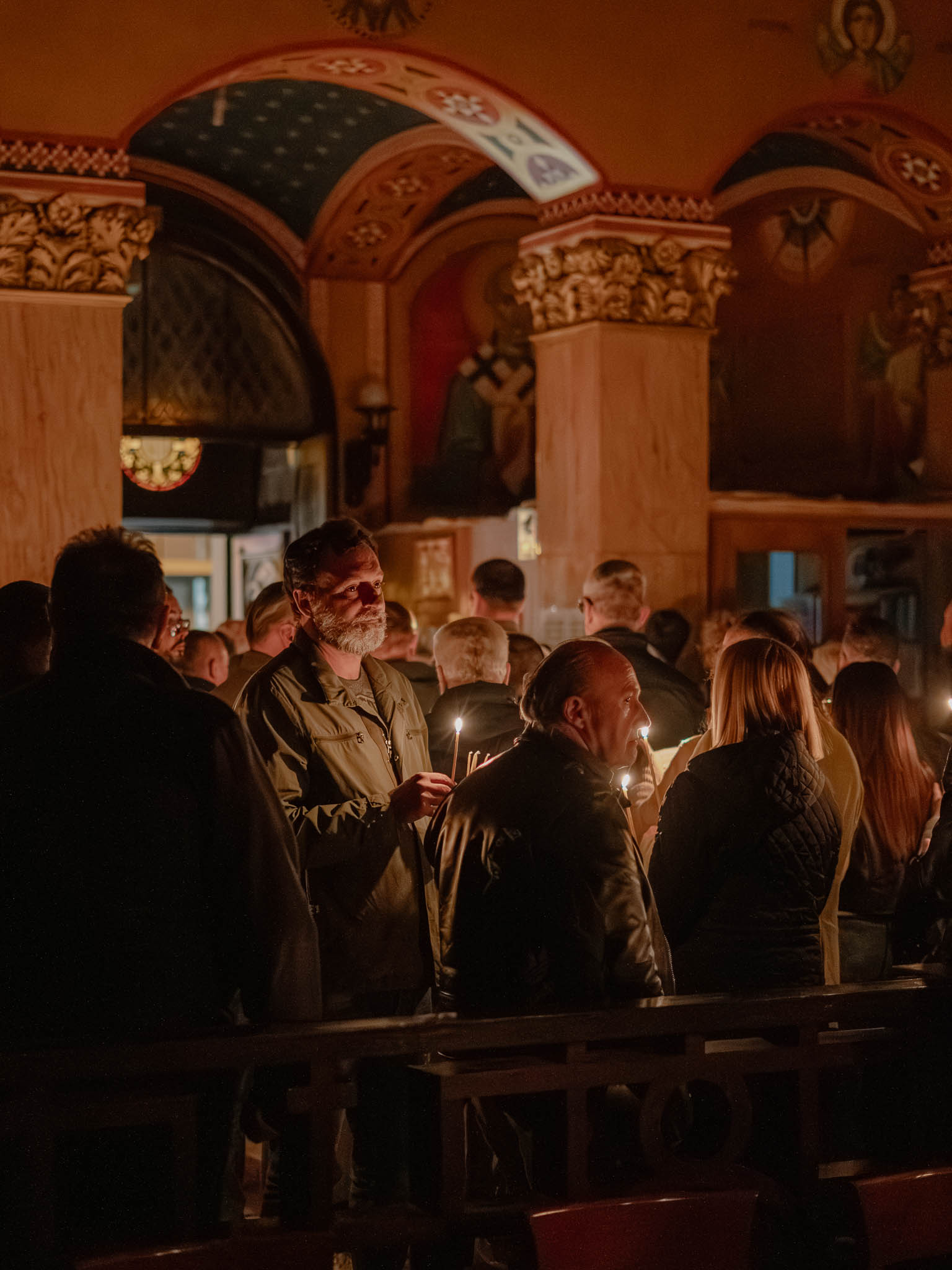 Сабрани вјерни народ испунио је храм радошћу и молитвом, свједочећи о побједи живота над смрћу и свјетлости над тамом, поздрављајући једни друге радосним поздравом: Христос васкрсе – Ваистину васкрсе!
