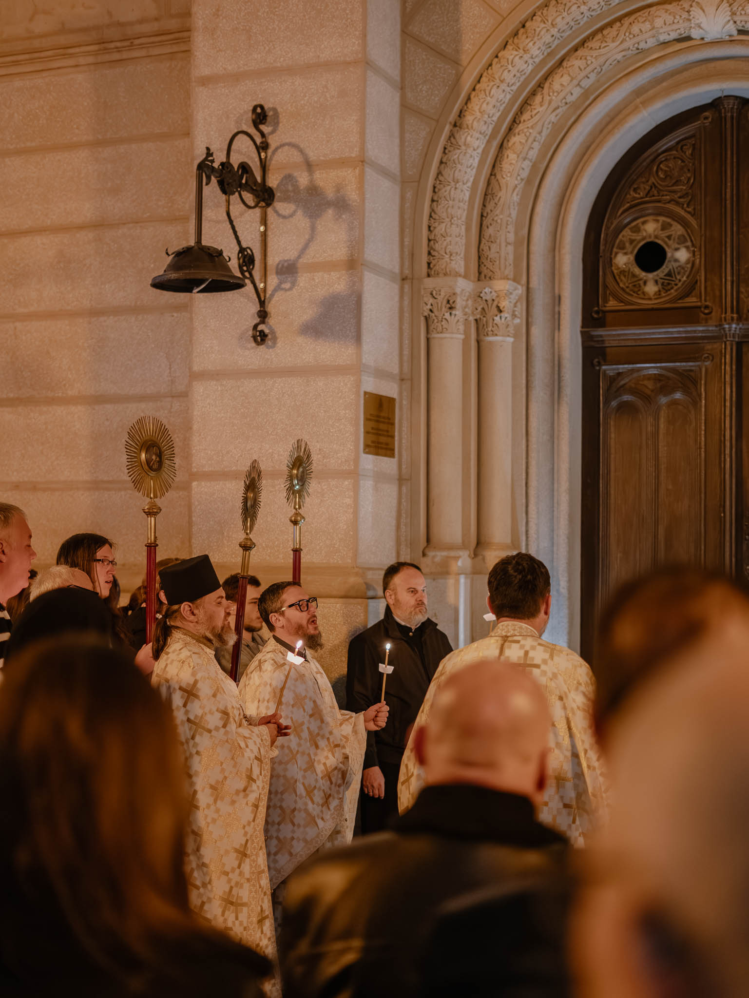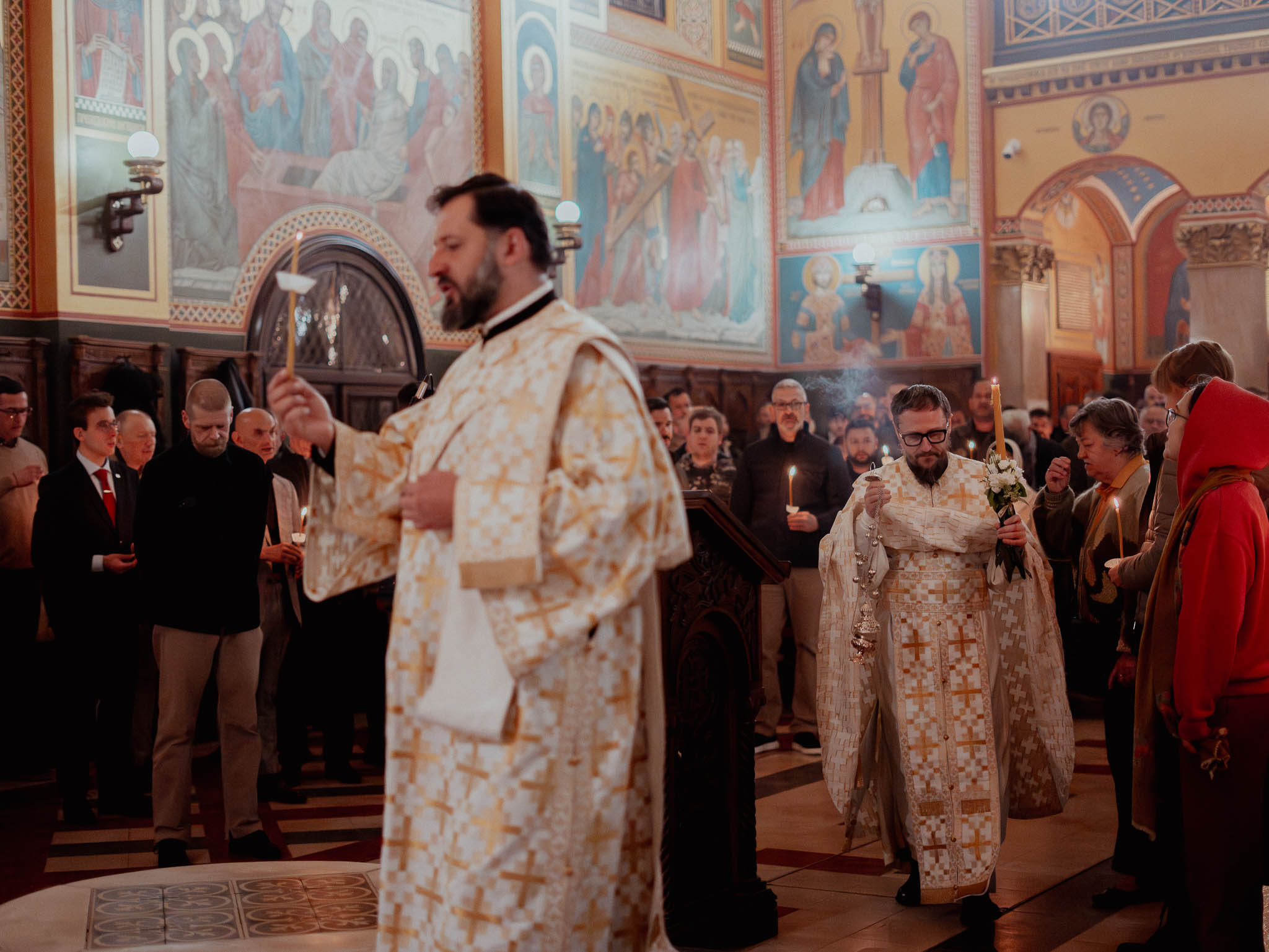У Саборном храму Преображења Господњег у Загребу, у суботу, 11. априла, у вечерњим часовима служено је Васкршње јутрење, којим је започето прослављање празника Васкрсења Христовог.