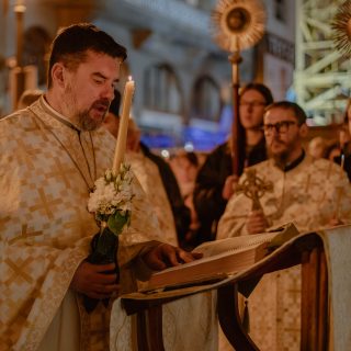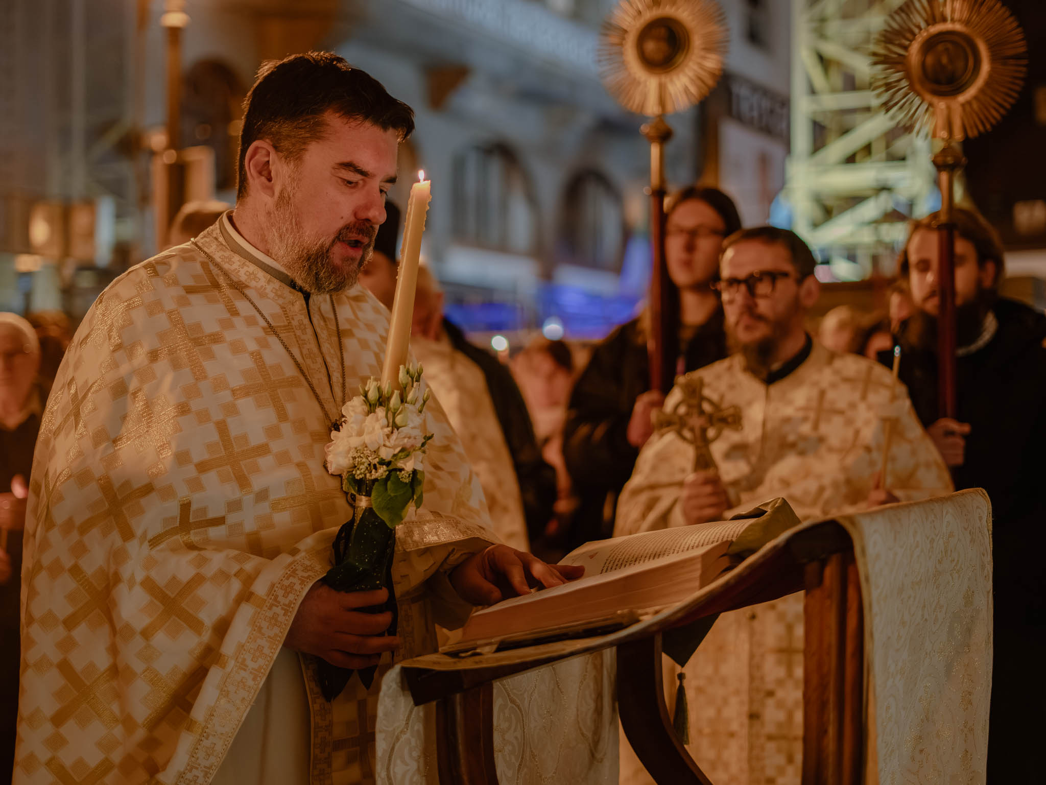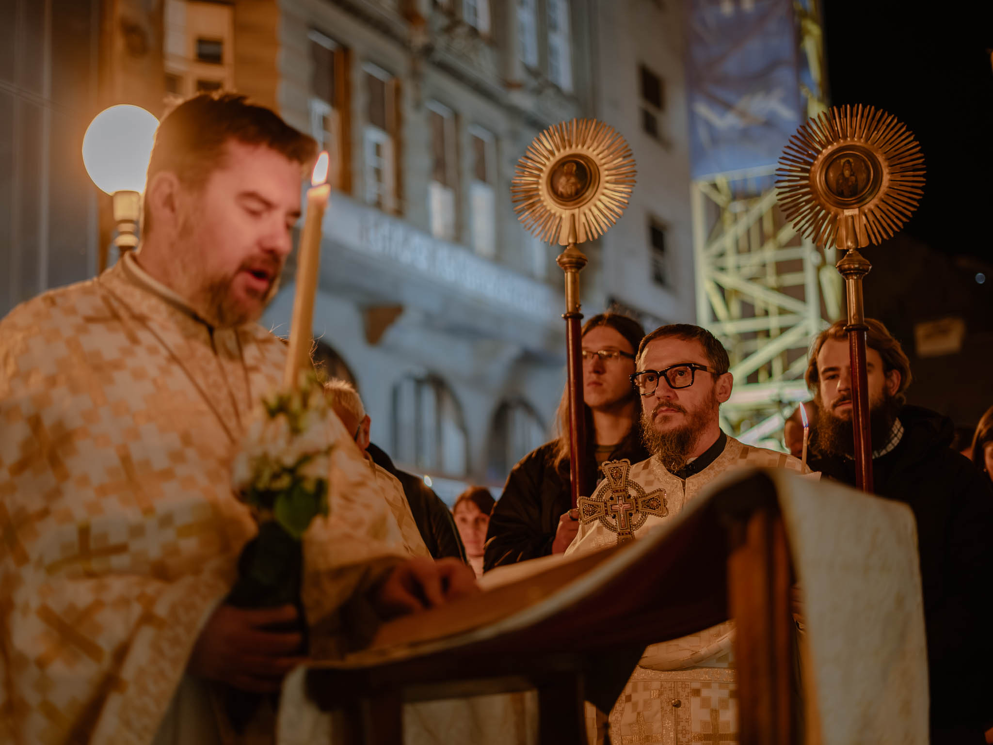 Свето Јеванђеље читао је старјешина храма, протојереј-ставрофор Душко Спасојевић, а по завршетку јутрења прочитао је и Васкршње слово Светог Јована Златоустог, позивајући све на радост празника и заједничко учешће у трпези вјере.