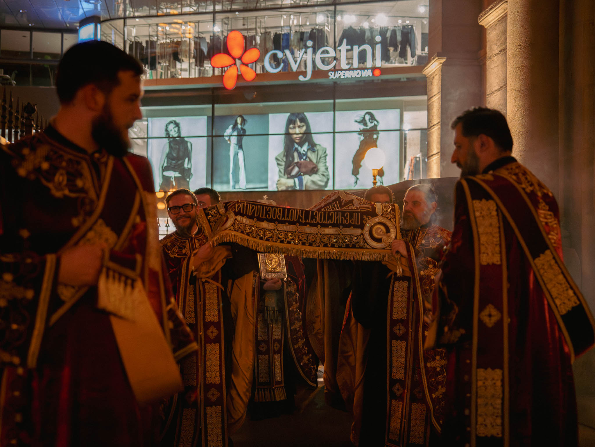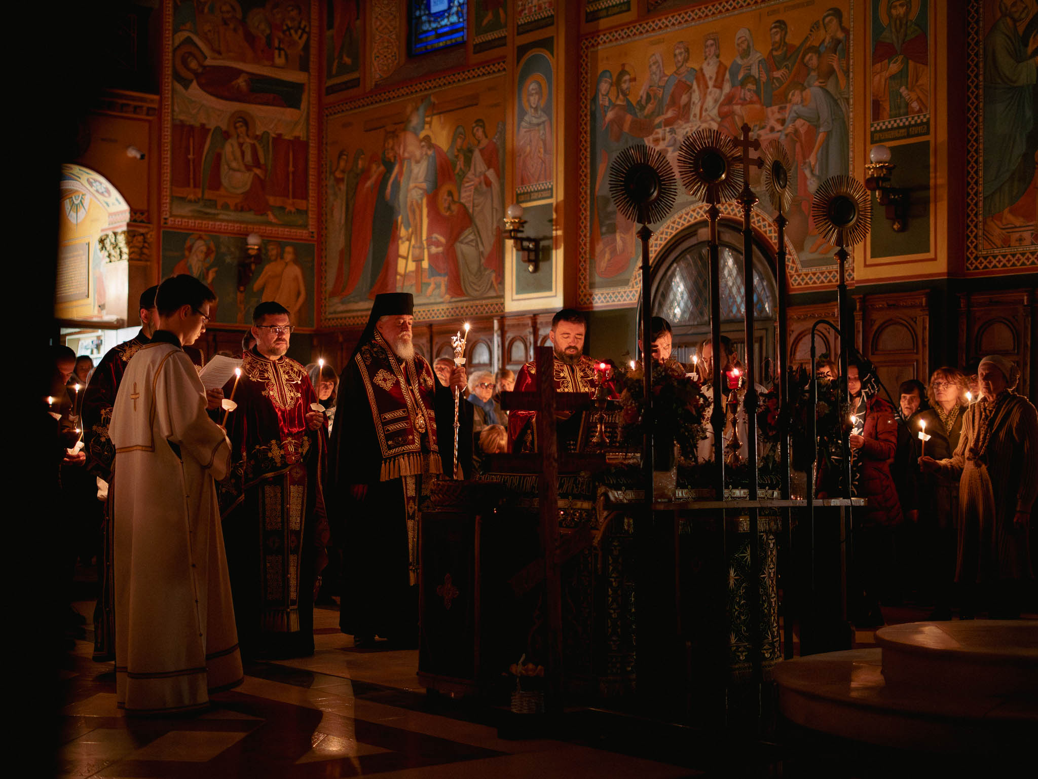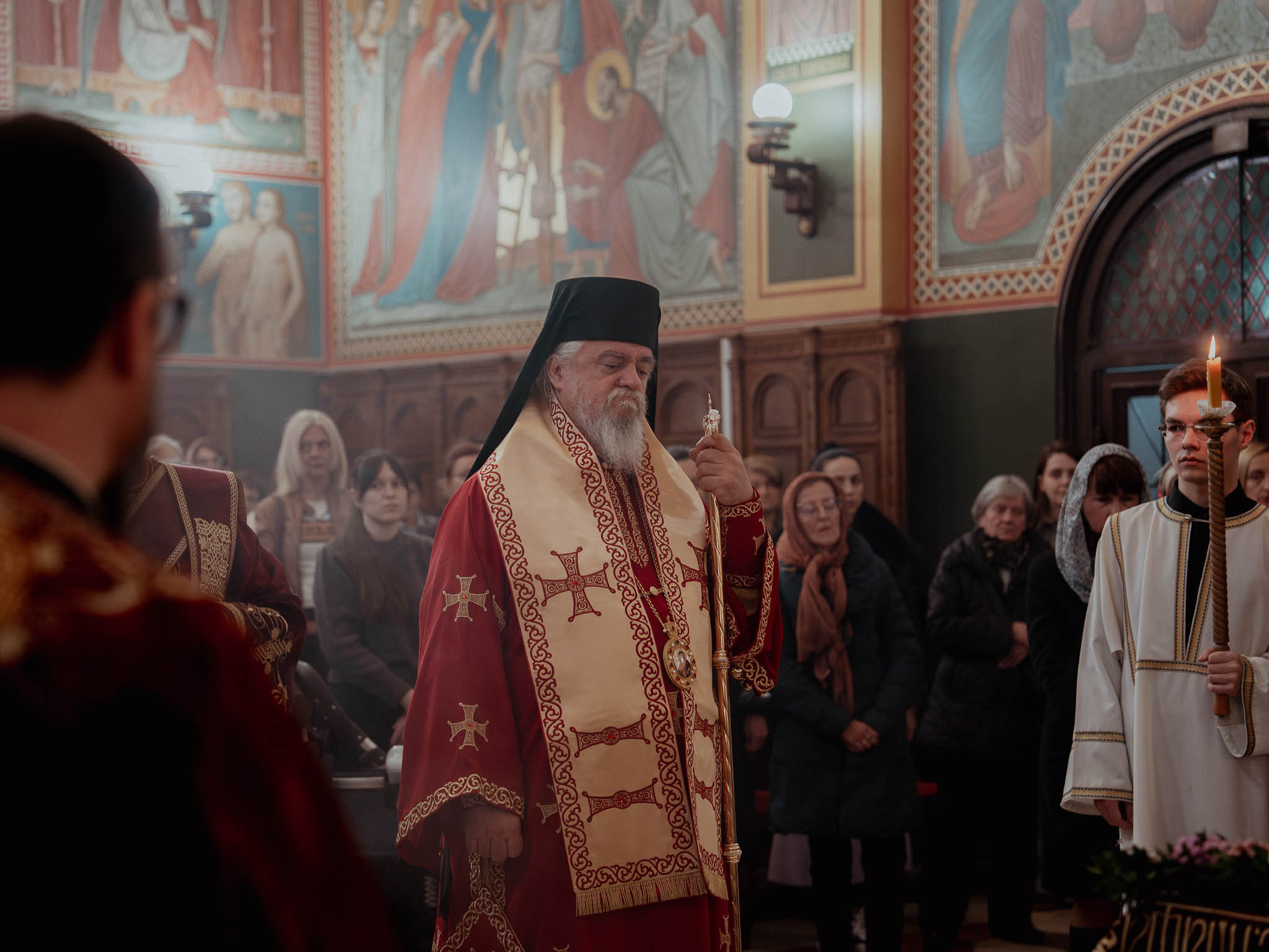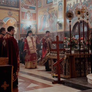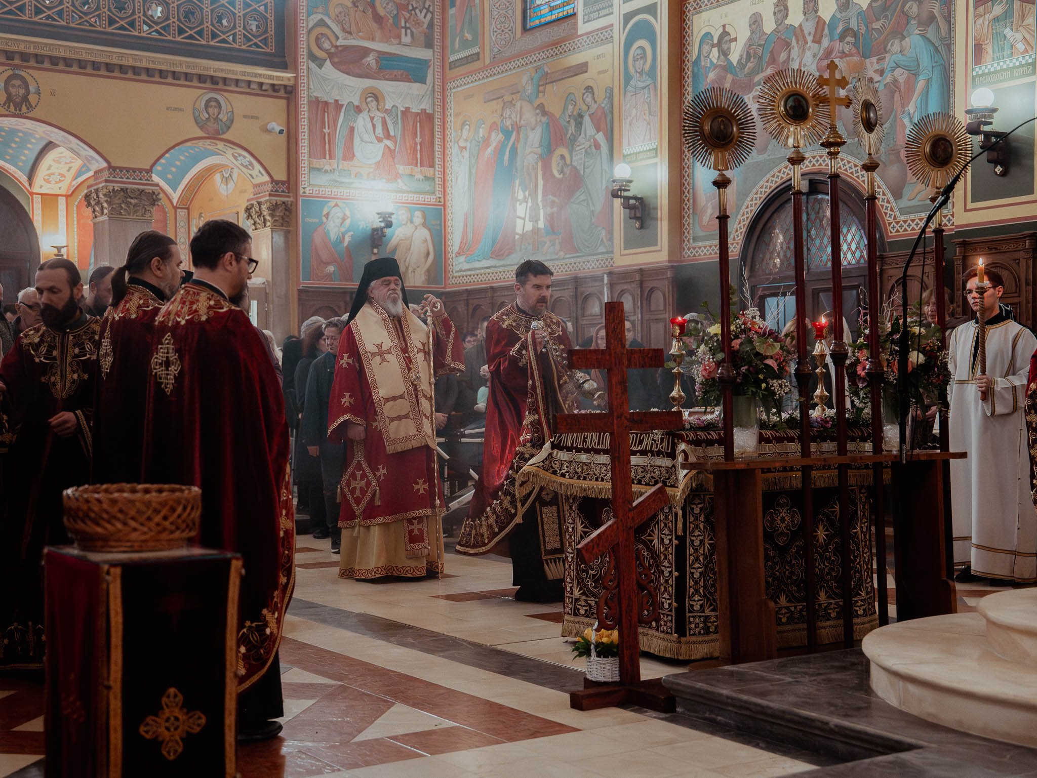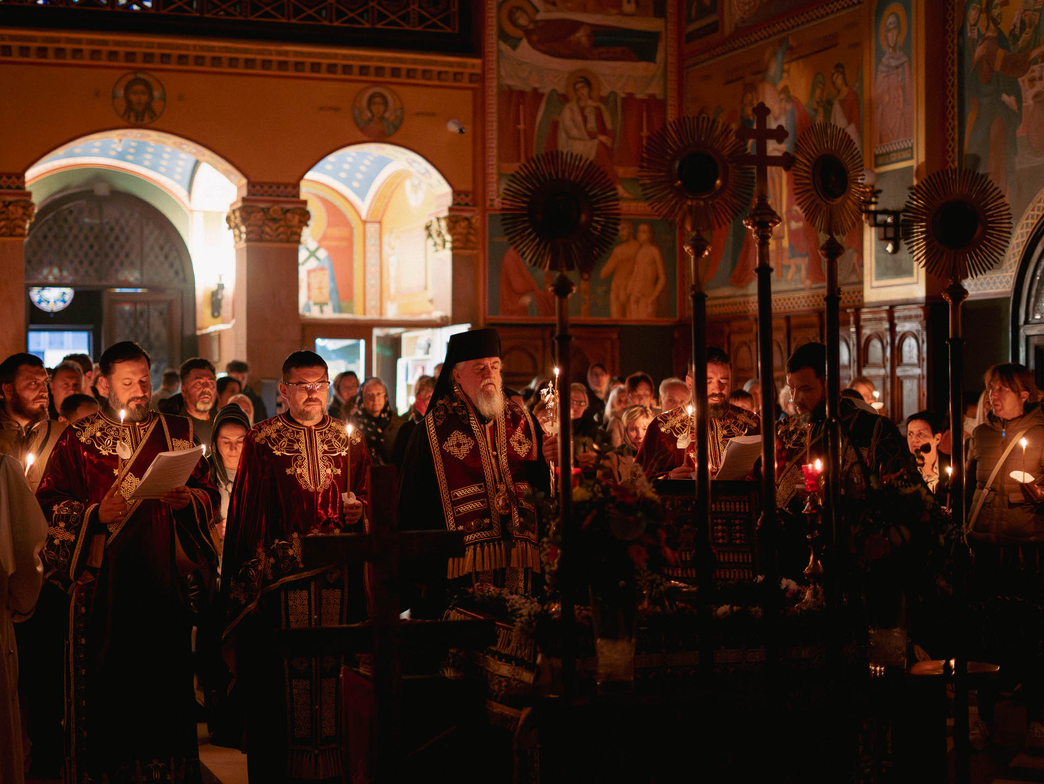 Његово Преосвештенство Епископ буеносајрески и јужно-централноамерички др Кирило, администратор Епархије загребачко-љубљанске, служио је Вечерње богослужење Великог петка у Саборном храму Преображења Господњег, уз саслужење свештенства Саборног храма и учешће вјерног народа.
