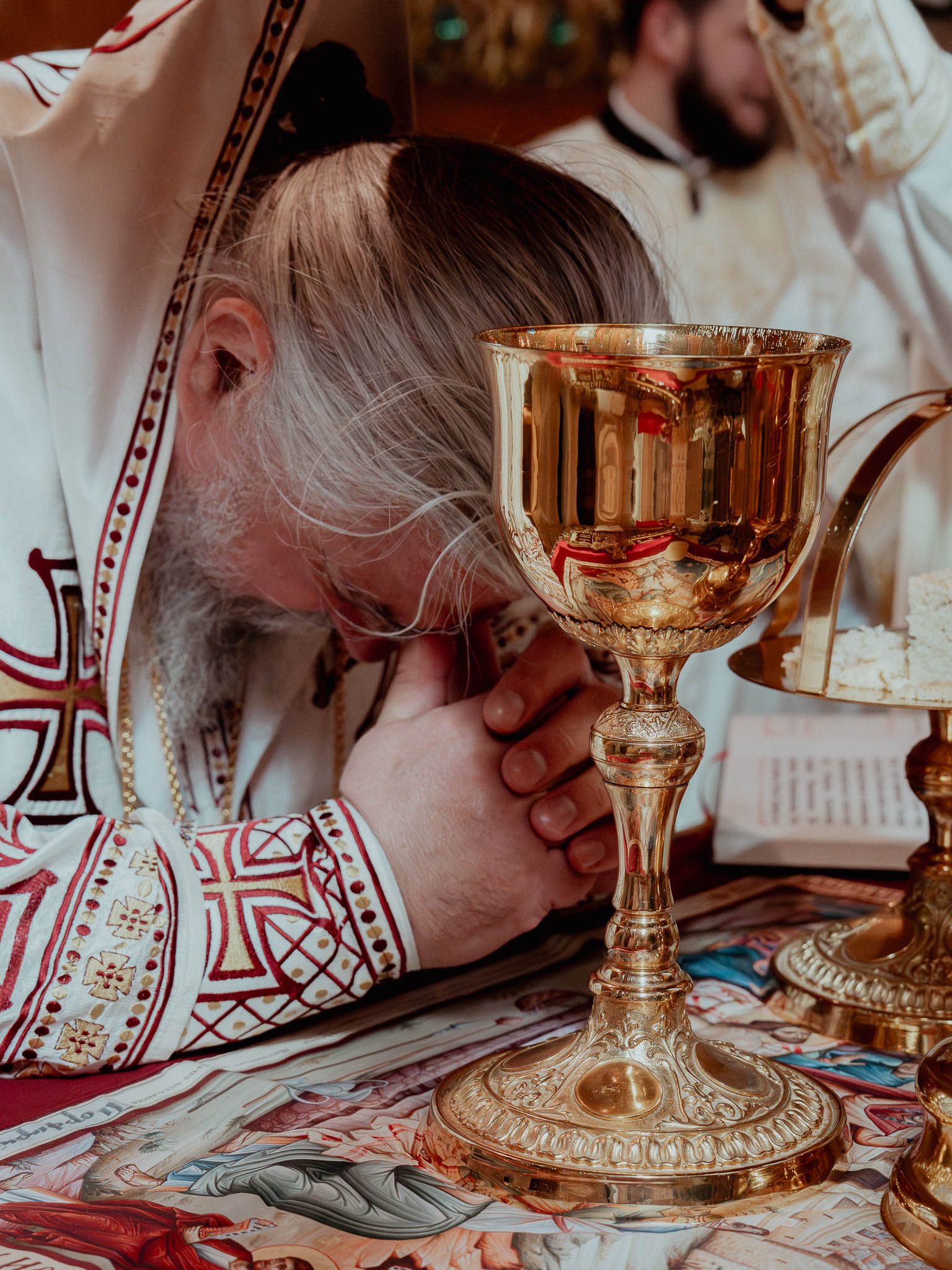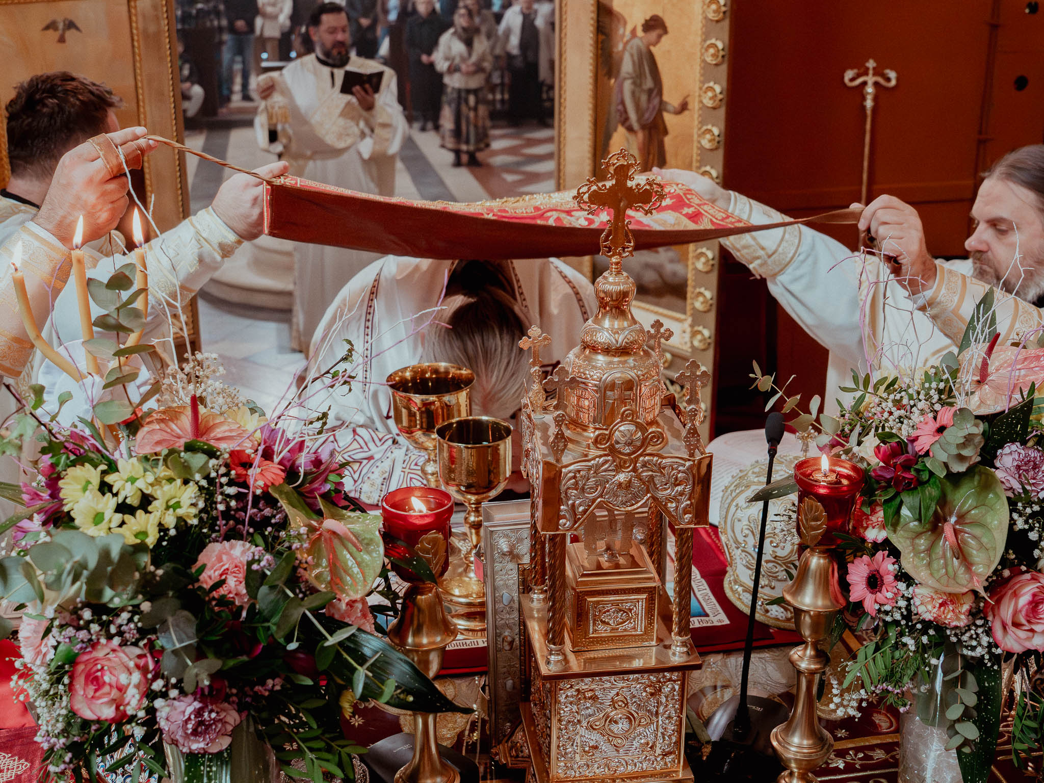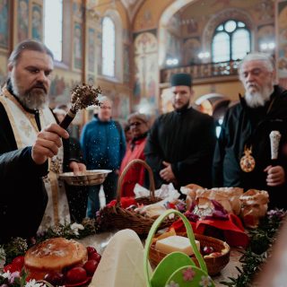 Сабрани вјерни народ приступио је Светој тајни причешћа, припремајући се за радосни празник Васкрсења Христовог.